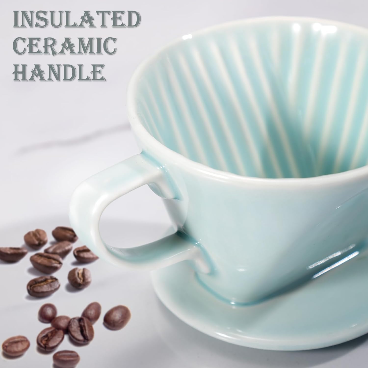 - 【High-Quality Material】: Our coffee dripper is made from high-temperature ceramic, ensuring excellent heat retention and durability. It keeps a stable temperature during brewing, ensuring each cup of coffee tastes perfect.
