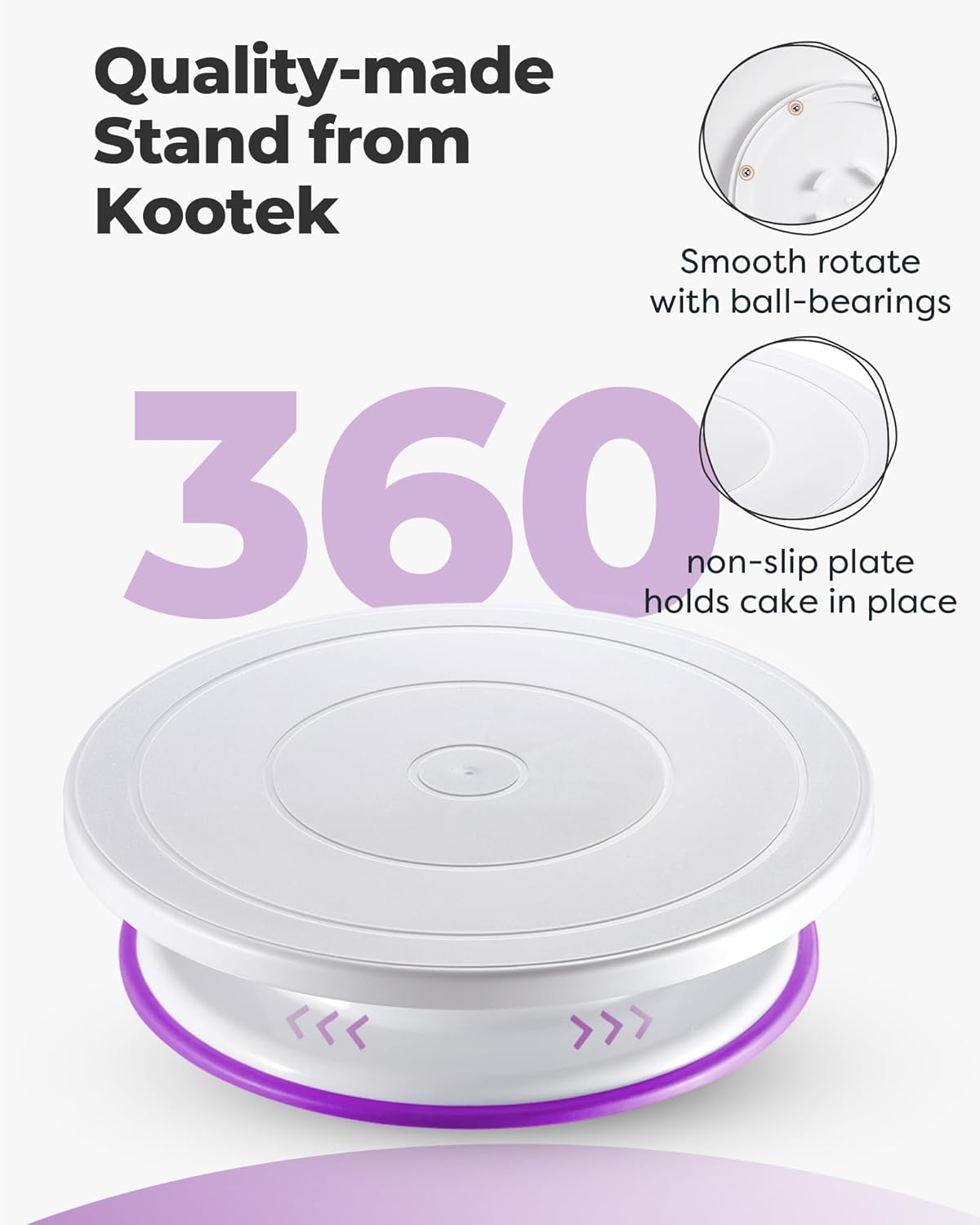 • 360° Spinning Cake Turntable: This essential baking supplies tool features a cake stand with an 11-inch diameter that spins smoothly on a hidden ball bearing, allowing you to achieve stunningly consistent patterns and gorgeous designs. With 360º clockwise and counterclockwise rotation, you can decorate cakes like a pro.