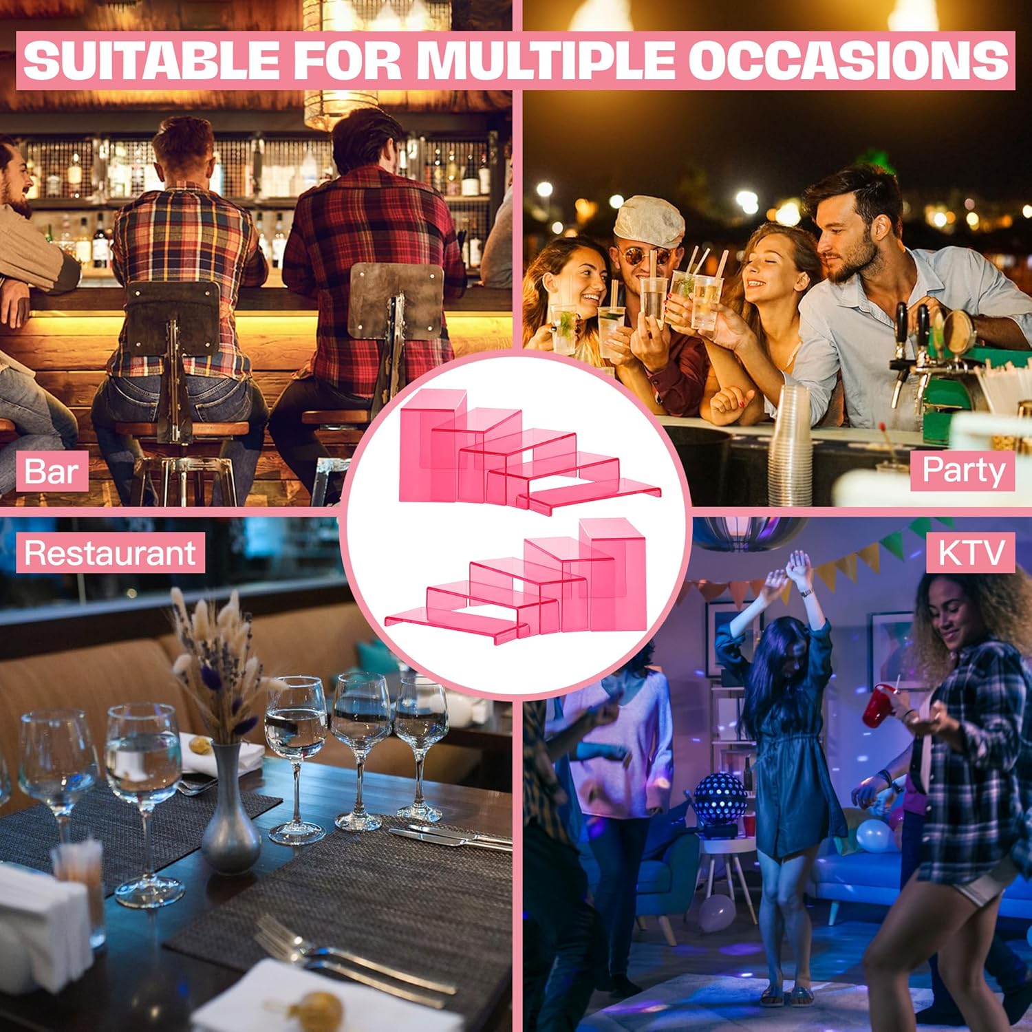 Goabroa Acrylic Display Risers, 2 Sets 10 Pcs Perfume Stand Organizer, Rectangular Riser Shelves for Figures, Cupcake, perfume display, Wine Glass and Handbag display,Transparent Pink