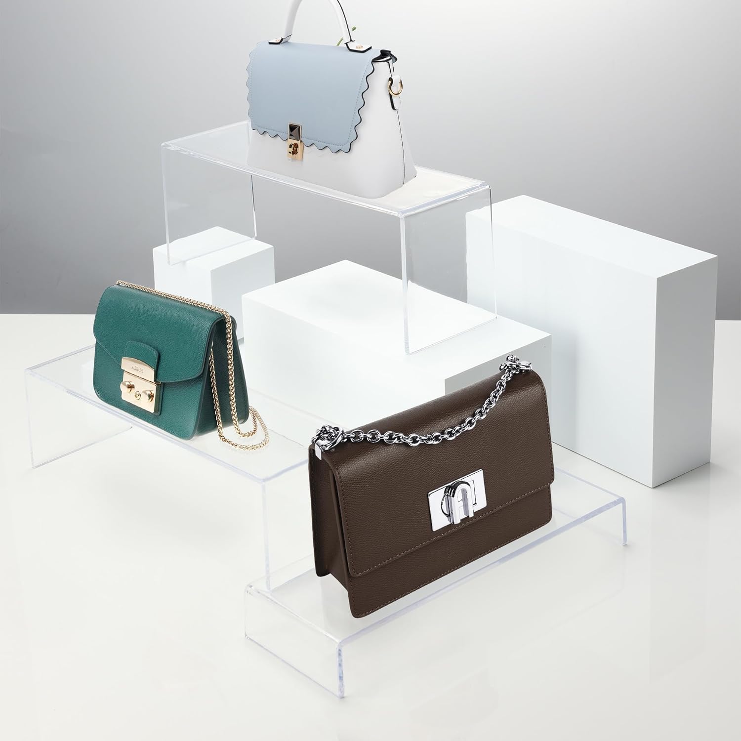- Widely Used: These acrylic risers display stands are suitable for a variety of product displays; Perfect for showcasing a variety of items, from Pop Figures and Collectibles to Cupcakes, Jewelry, Candles, Toys, Perfumes, and more; The stepped design adds a touch of elegance to your collection