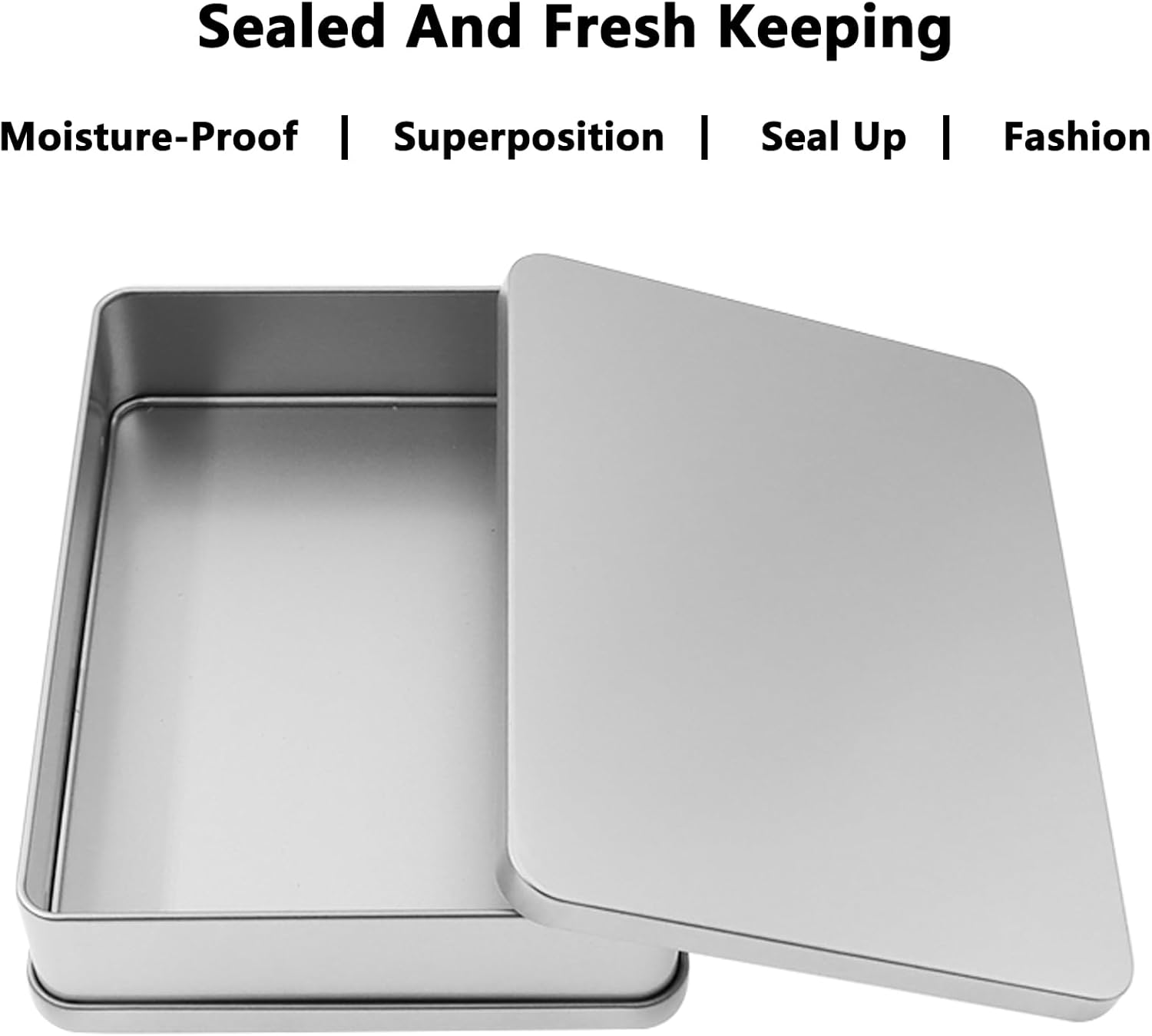 - High Quality Material - These metal empty boxes are made of tinplate,durable to use,not easy to break and rust,and have well-polished edges for easy placement anywhere.Each box comes with a matching silver press-top lid.