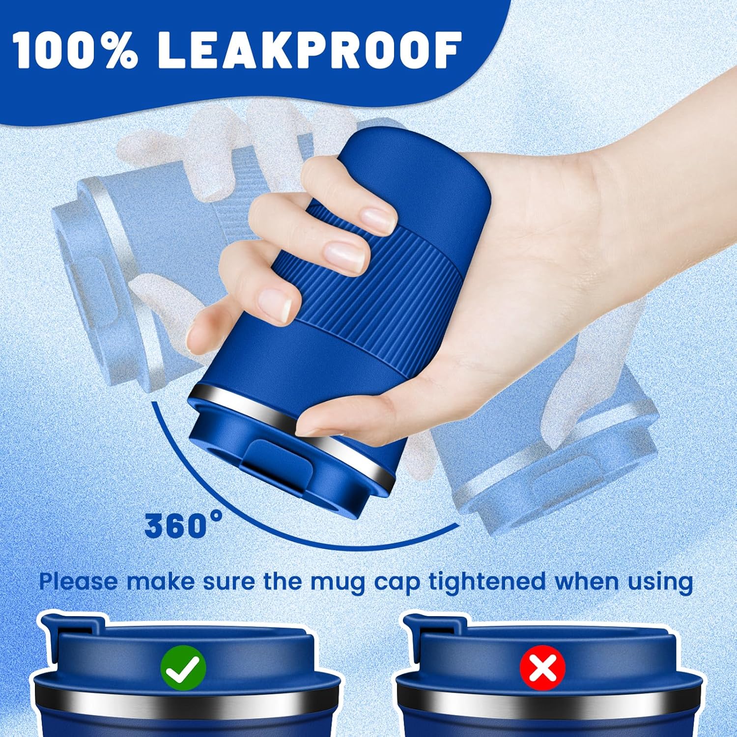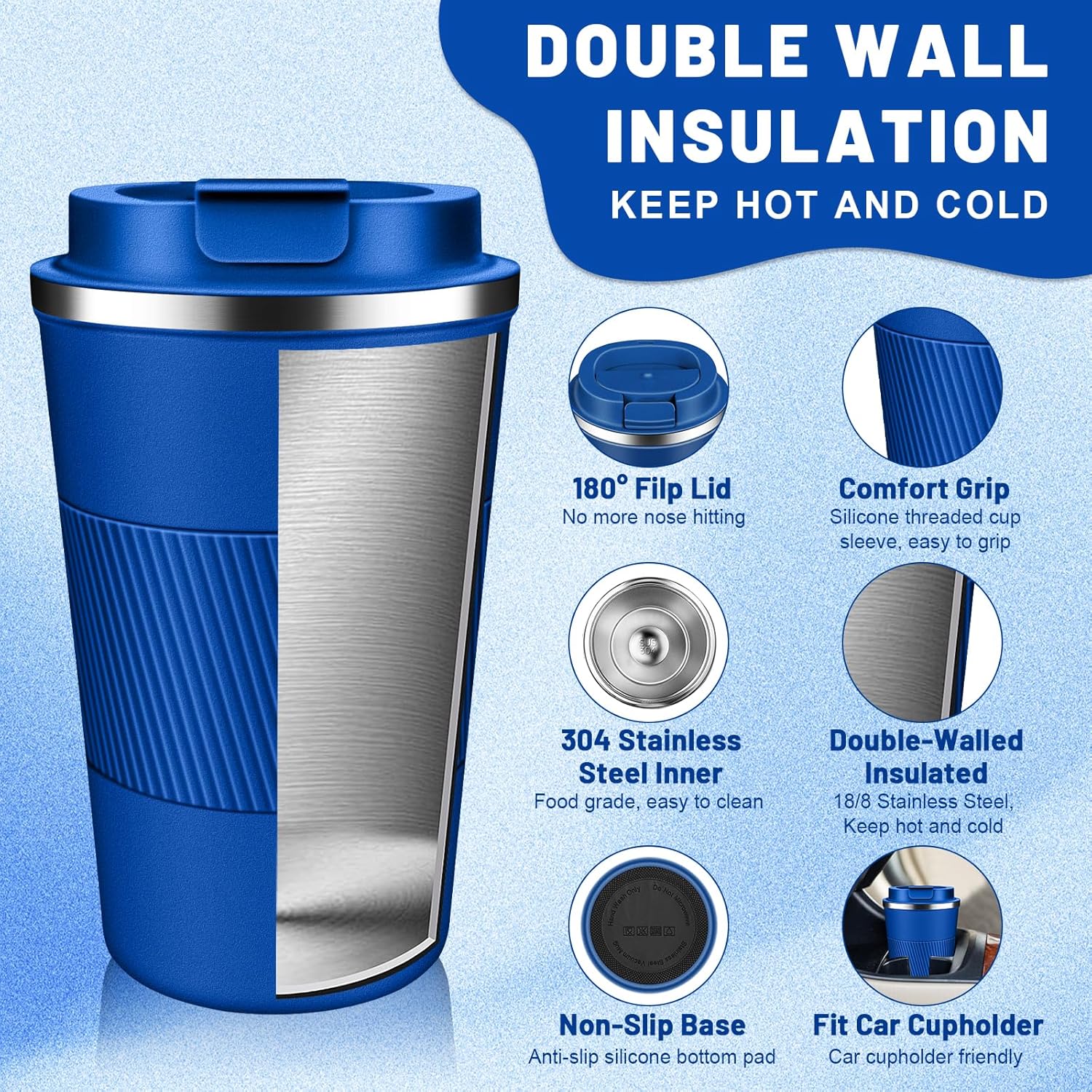 - Easy Clean & Comfort Grip: The large-opening design make insulated coffee tumbler mug easy to clean, the travel coffee mug comes with an eco-friendly one-hand flip-top snap, spiral silicone sleeve for easyily carry out, makes drinking with one hand comfortable and secure, sealing silicone strip and a screw lid design to prevent spills.