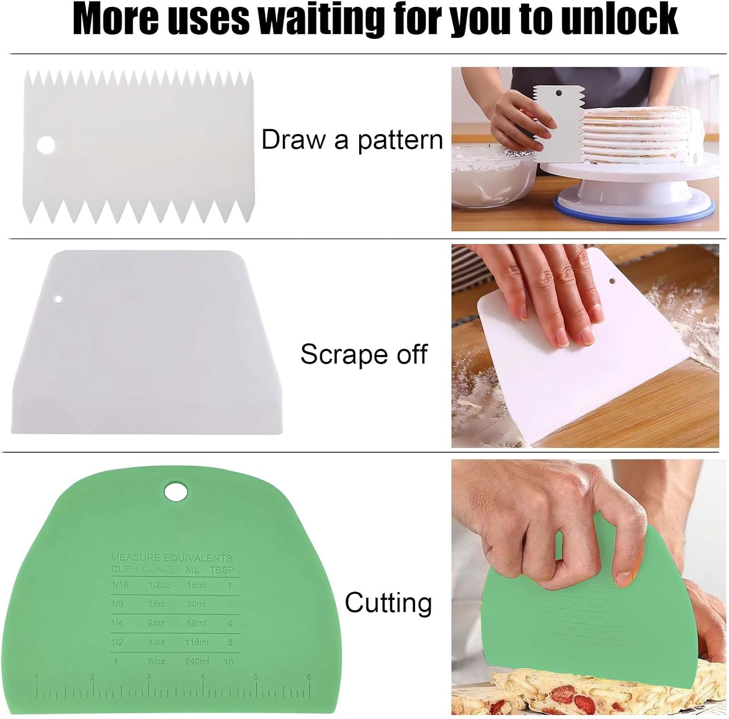 - 5.【Easy to operate】Suitable for professionals and novice bakers,non-professional baking maker,chef or cake decorating beginner.you can make the cakes & pastries that you like by using these scraper tools set, help you create different interesting food and unlimited delicious food.