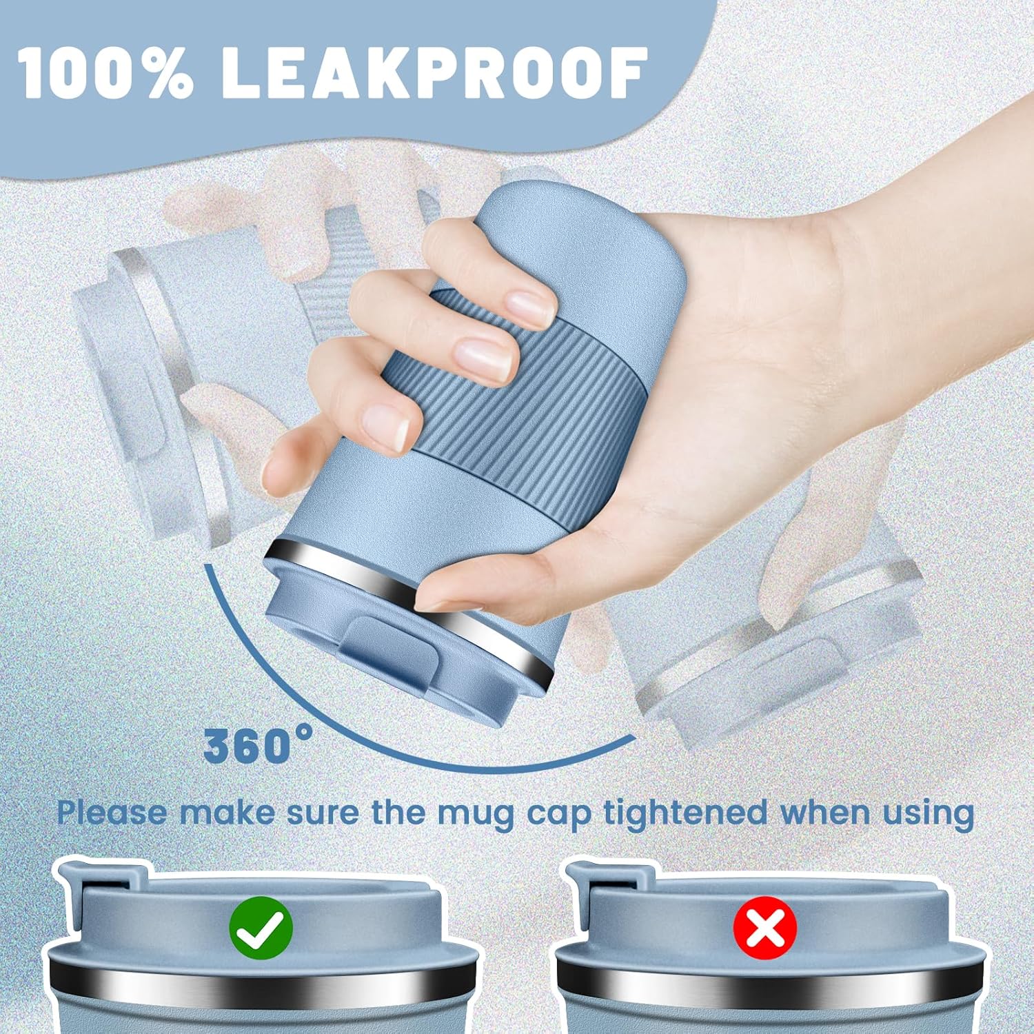 - Easy Clean & Comfort Grip: The large-opening design make insulated coffee tumbler mug easy to clean, the travel coffee mug comes with an eco-friendly one-hand flip-top snap, spiral silicone sleeve for easyily carry out, makes drinking with one hand comfortable and secure, sealing silicone strip and a screw lid design to prevent spills.