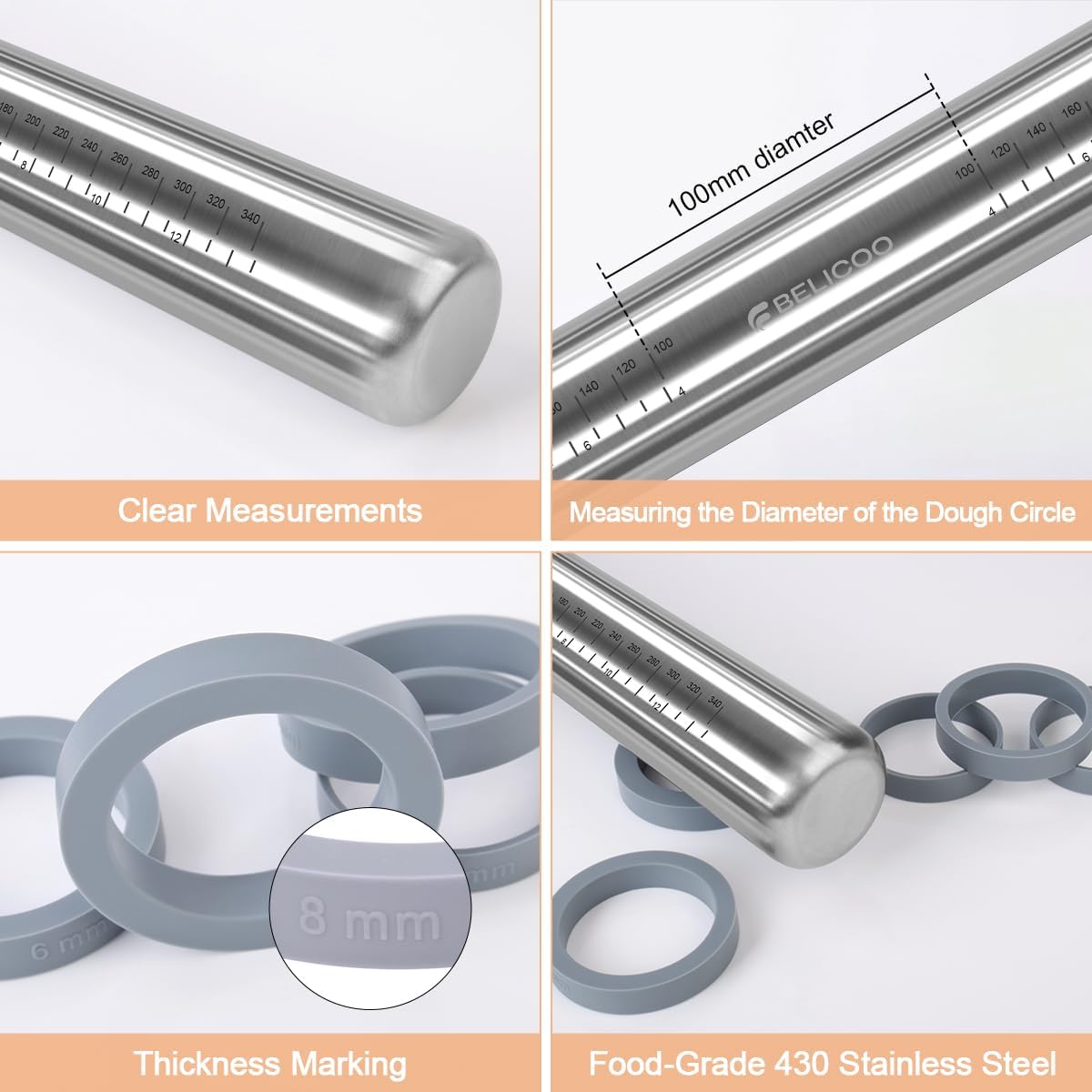 - 【Safe and Easy to Clean】The surface of the rolling pin is smooth and seamless, and the dough will not remain or stick. It can be cleaned with water or in a dishwasher. Food grade 430 stainless steel material is less prone to rusting. Compared to wooden rolling pins, stainless steel is less prone to mold and damage, making it safer and healthier.