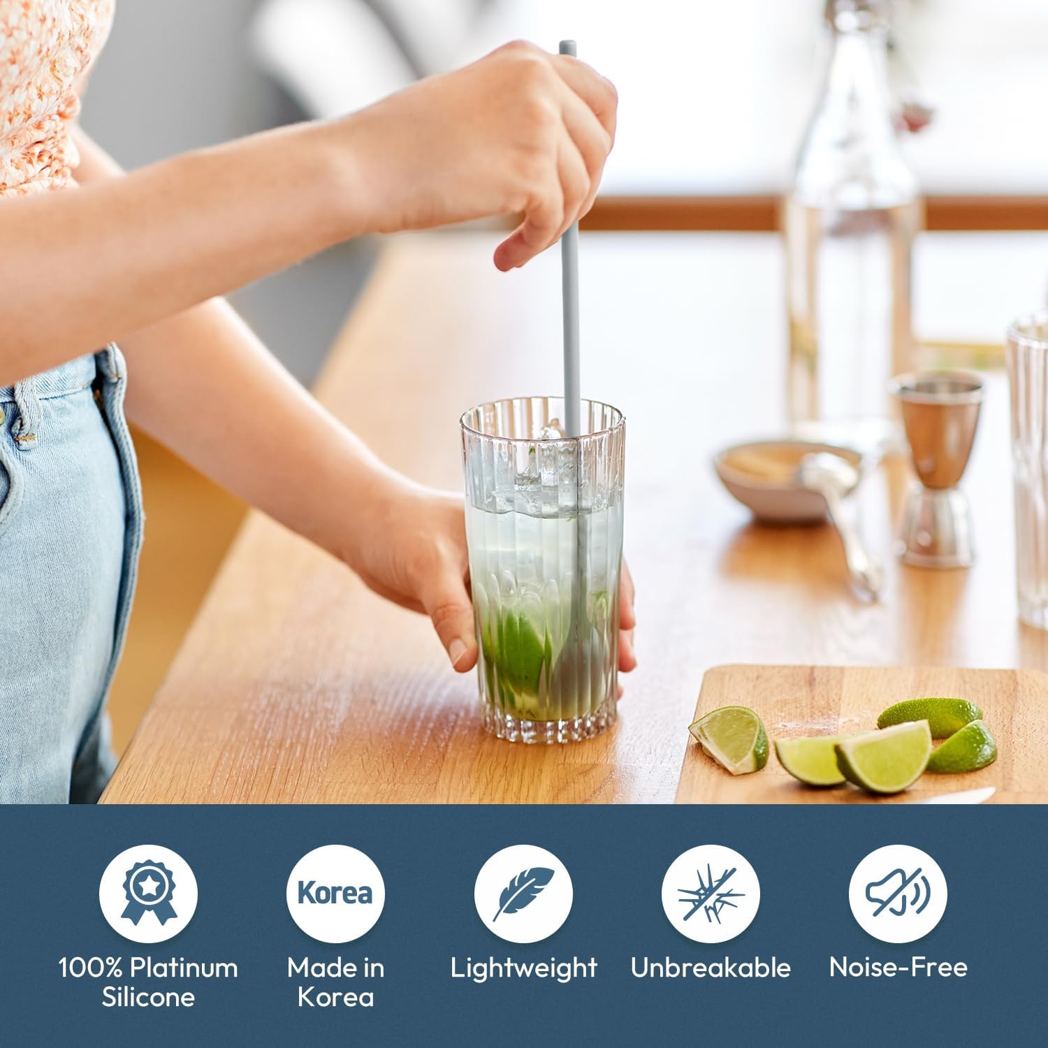 carrotez 9.9" Silicone coffee stirrer, Long Coffee Spoon, Reusable Iced Tea Spoon, Multipurpose Beverage Stirring Stick - Grey