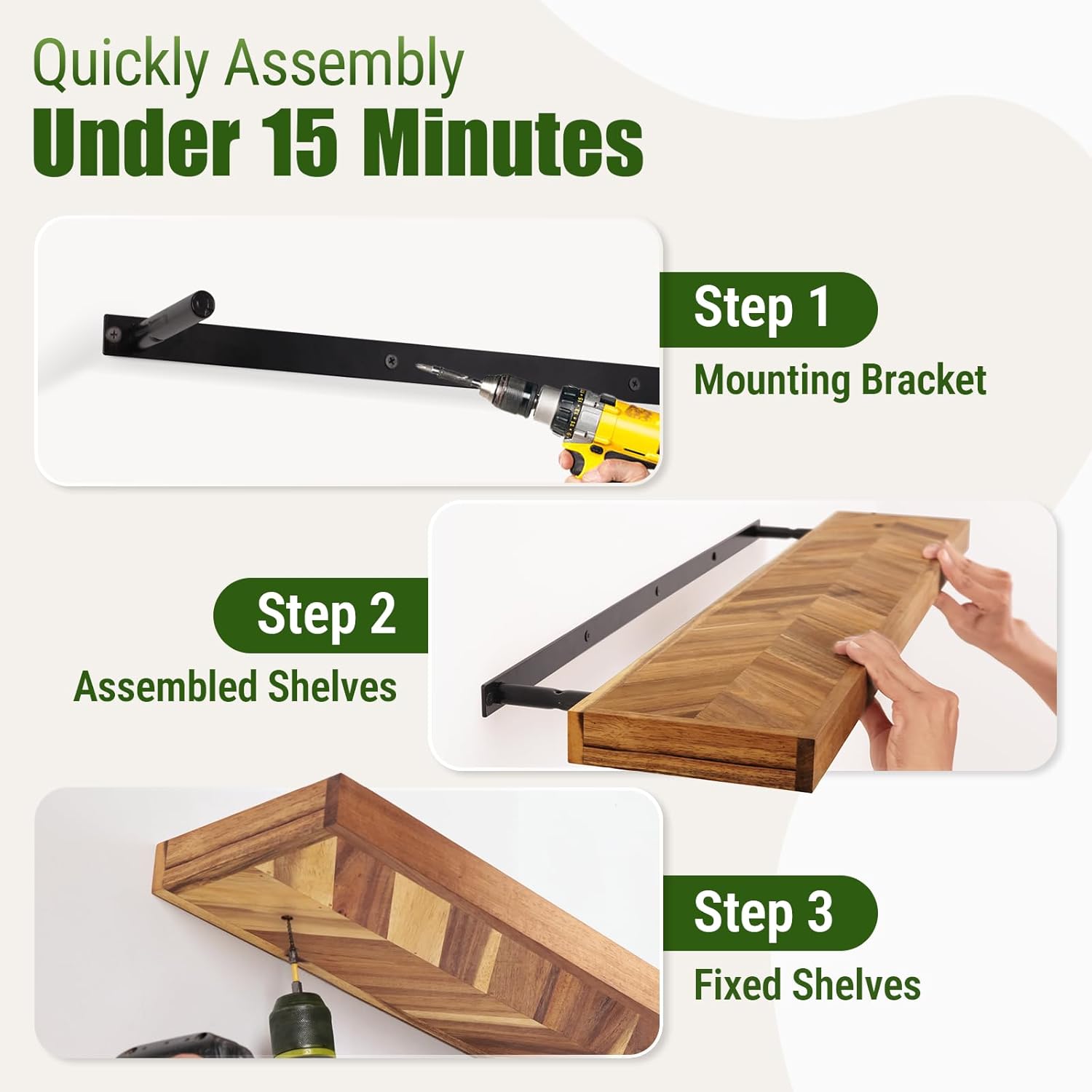 - ✅[𝐏𝐫𝐞𝐦𝐢𝐮𝐦 𝟏.𝟓" 𝐀𝐜𝐚𝐜𝐢𝐚 𝐖𝐨𝐨𝐝]: Made from 100% acacia wood with a striking chevron finish, these shelves boast exceptional durability and timeless design to complement any decor.