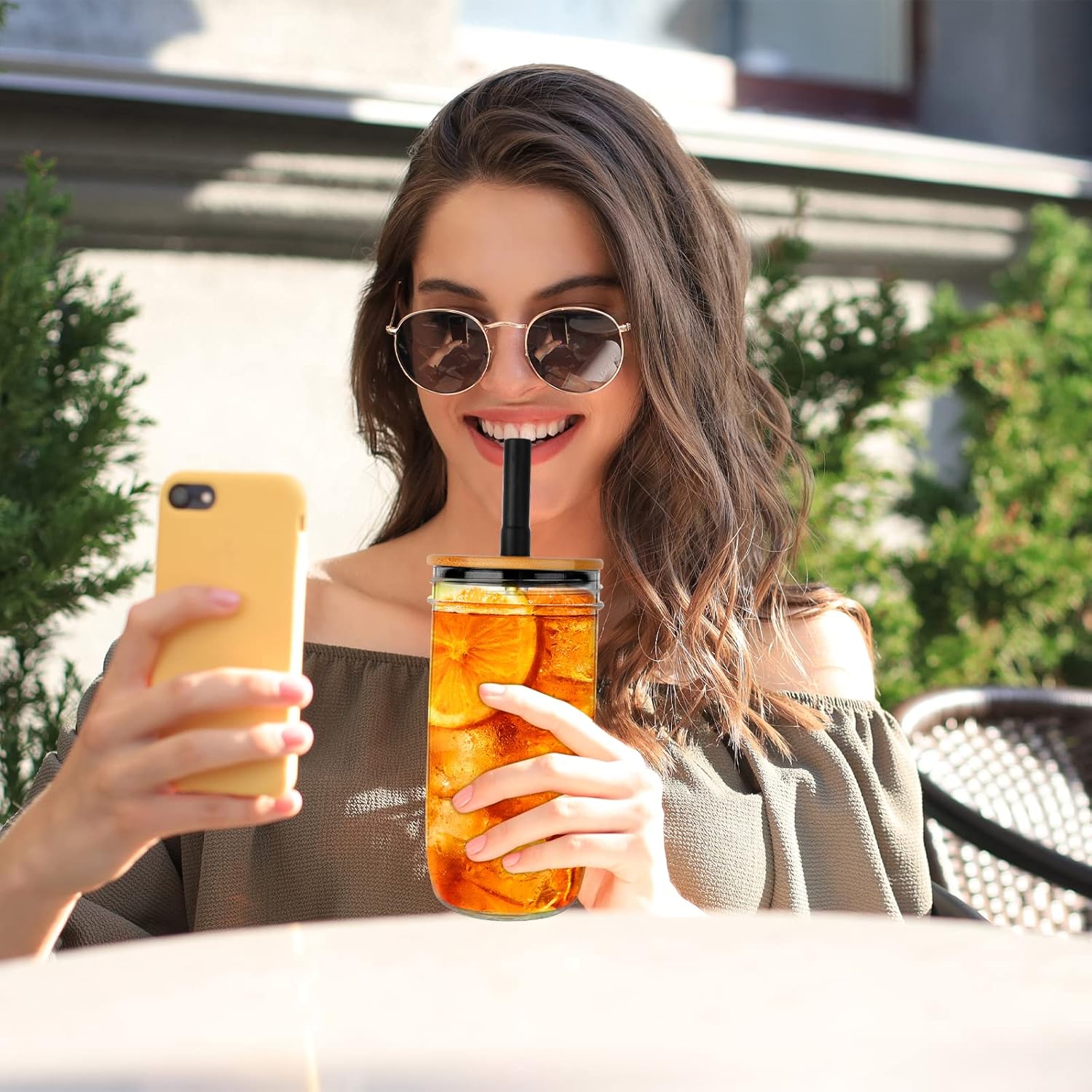 - FIT IN CAR CUP HOLDER: The 24 oz glass tumbler with straw features friction fit spill proof bamboo lid and tampered base which make it cup holder friendly and your ideal on-the-go cup.Take your beverage to-go with the travel-ready Luxgola Glass 24-Ounce water tumbler with big and wide straw.