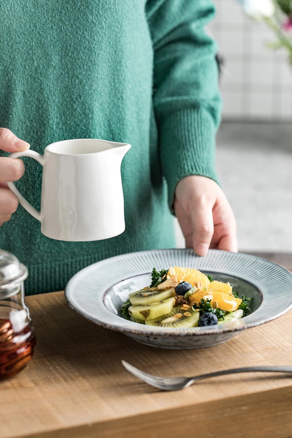 - Multipurpose: Our porcelain milk creamer pitcher can hold cream, hot maple syrup, salad plates, gravy, butter, etc., and can play an important role in homes, restaurants, cafes, bars, and many other places; so it's perfect to give as a gift to a coffee lover or to a home chef, a tea lover, and so on!