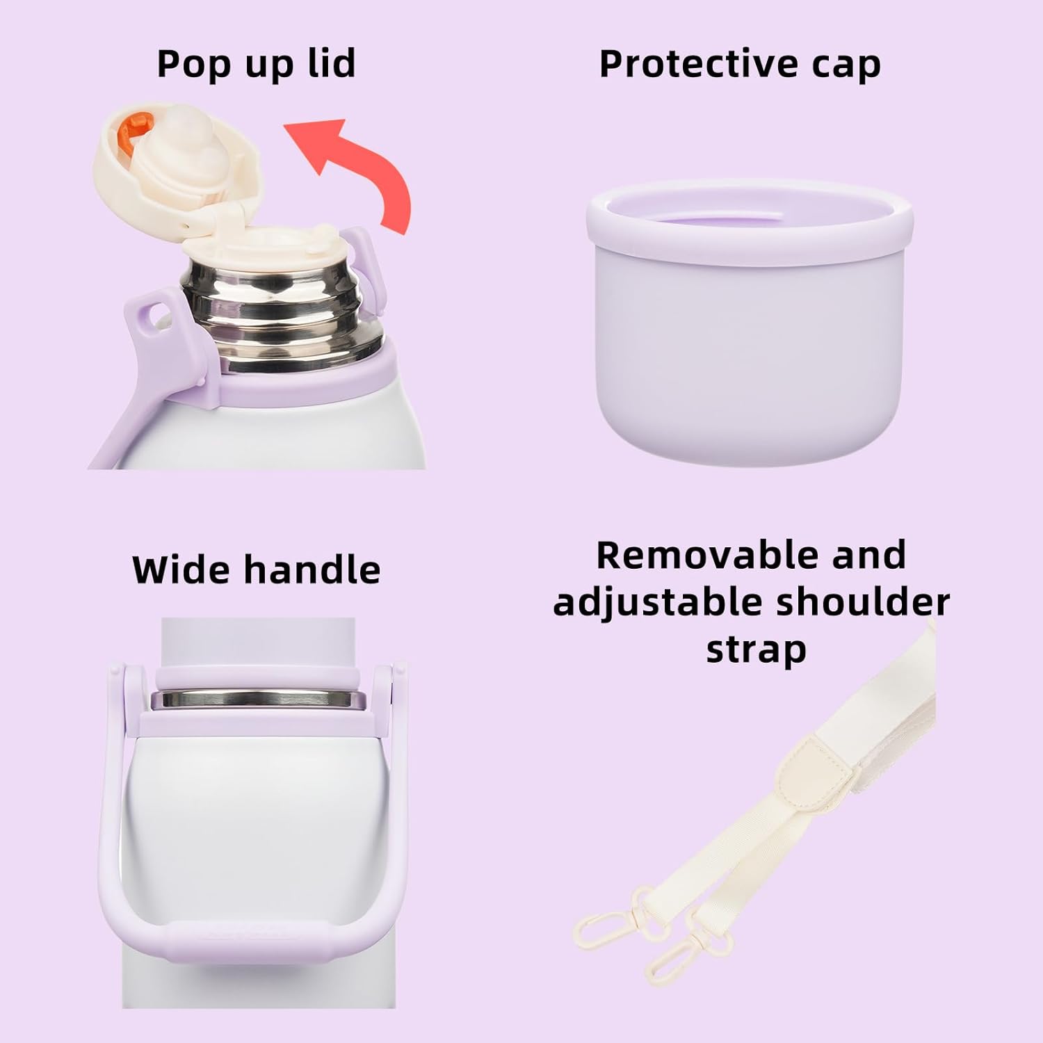 - BPA-Free Water Bottle with Carry Handle and Shoulder Strap: Has a silicone spout and a shoulder strap, all can removable for easy cleaning, comfortable handle makes it easy to carry, also making it an ideal choice for outdoor activities or everyday use