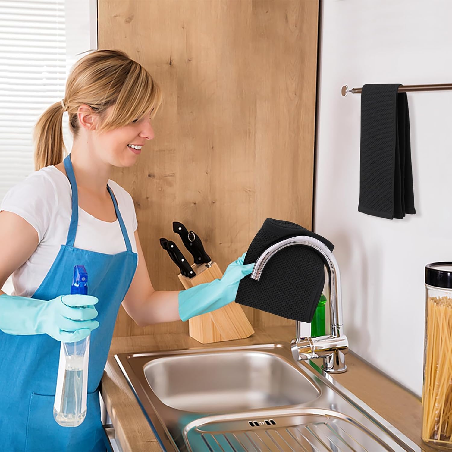 Kitinjoy 100% Cotton Waffle Weave Kitchen Towels, 12-Pack Super Soft and Absorbent Kitchen Dish Towels for Drying Dishes, Kitchen Hand Towels, 13 in x 28 in, Black
