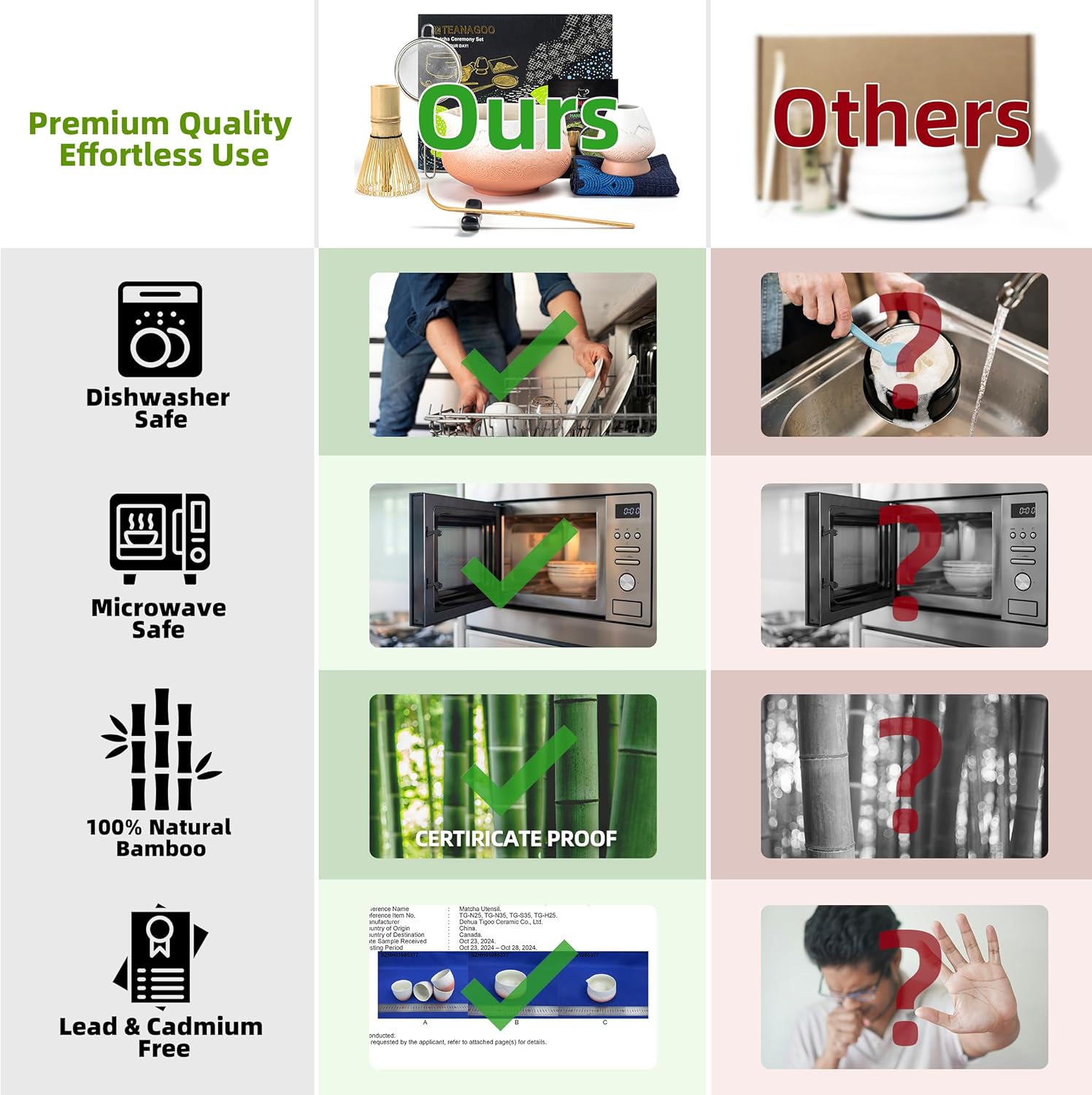 - HIGH SAFETY & QUALITY: Our Handcraft Matcha Whisk, About 100 Fine Tines(百本立),100% Crafted From High Quality Bamboo With A Vegetable Oil Finish To Enhance Its Durability. Additionally, Our Ceramic Bowl Has Lead-free And Mercury-free Test Reports.food-grade And Eco-friendly