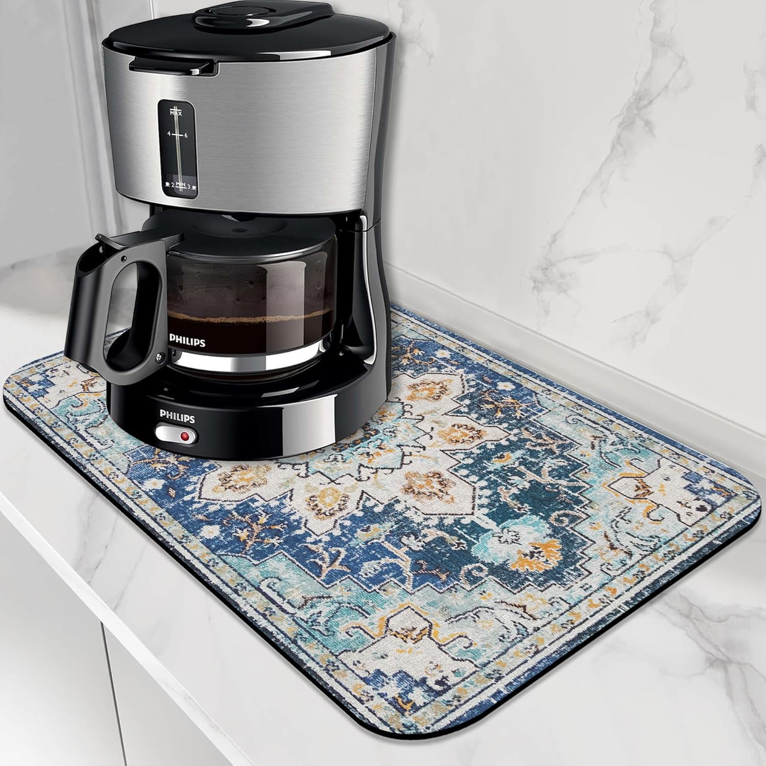- 【Hide Stains & Easy to Clean】Our coffee drying mat, surface material up to 85% porosity can quickly absorb stains. The countertop coffee bar mat can be cleaned by hand or machine to remove stains, will not fade after repeated washing, can be reused many times, due to the high-definition printed suede with excellent color locking effect, please do not use bleach to clean the mat.