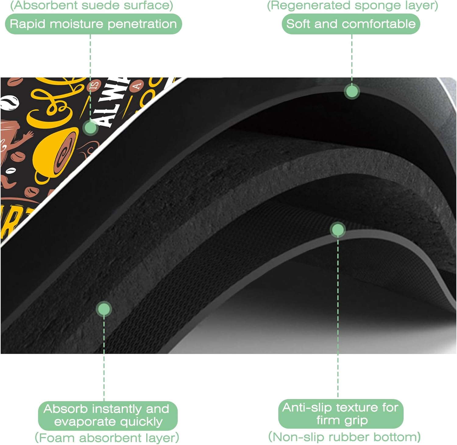 - 【Hide Stains & Easy to Clean】Our coffee drying mat, surface material up to 85% porosity can quickly absorb stains. The countertop coffee bar mat can be cleaned by hand or machine to remove stains, will not fade after repeated washing, can be reused many times, due to the high-definition printed suede with excellent color locking effect, please do not use bleach to clean the mat.