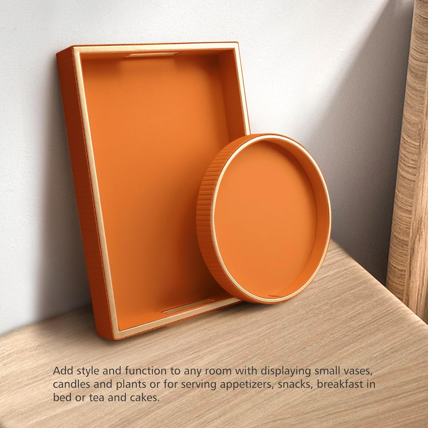- 【Approximate Dimension】Rectangular tray, 15.3*11.2*2 inches. Round tray, diameter 10 inches, high 1.2 inches, making it a perfect size for storing small items.