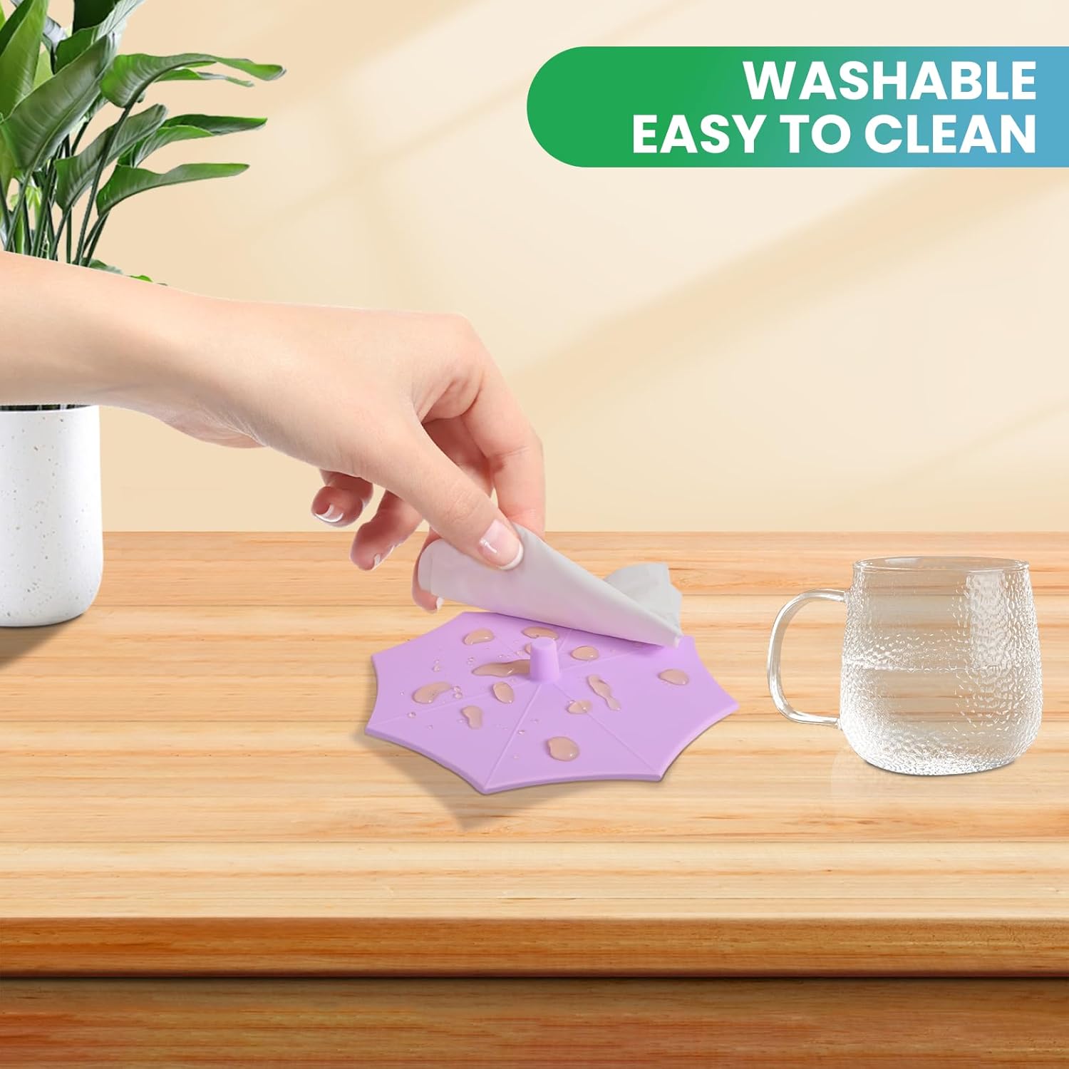Silicone Cup Covers (Set of 4) , Multicolored Silicone Lids for Mugs, Cups, Tea Pots,Flexible Mug Covers,Hot Cup Lids for Coffee & Tea