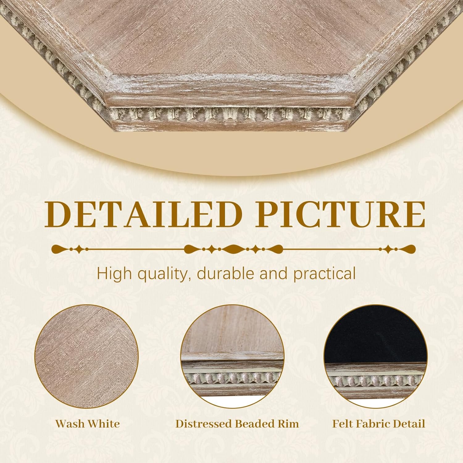 - REFINED AND ELEGANT: Octagonal serving tray is wash white finish and the edges are decorated with wooden beads, the distressed surface gives it a homey vintage feel. The overall appearance is unique and exquisite that goes well with many types of decor, create a fun centerpiece for your space.