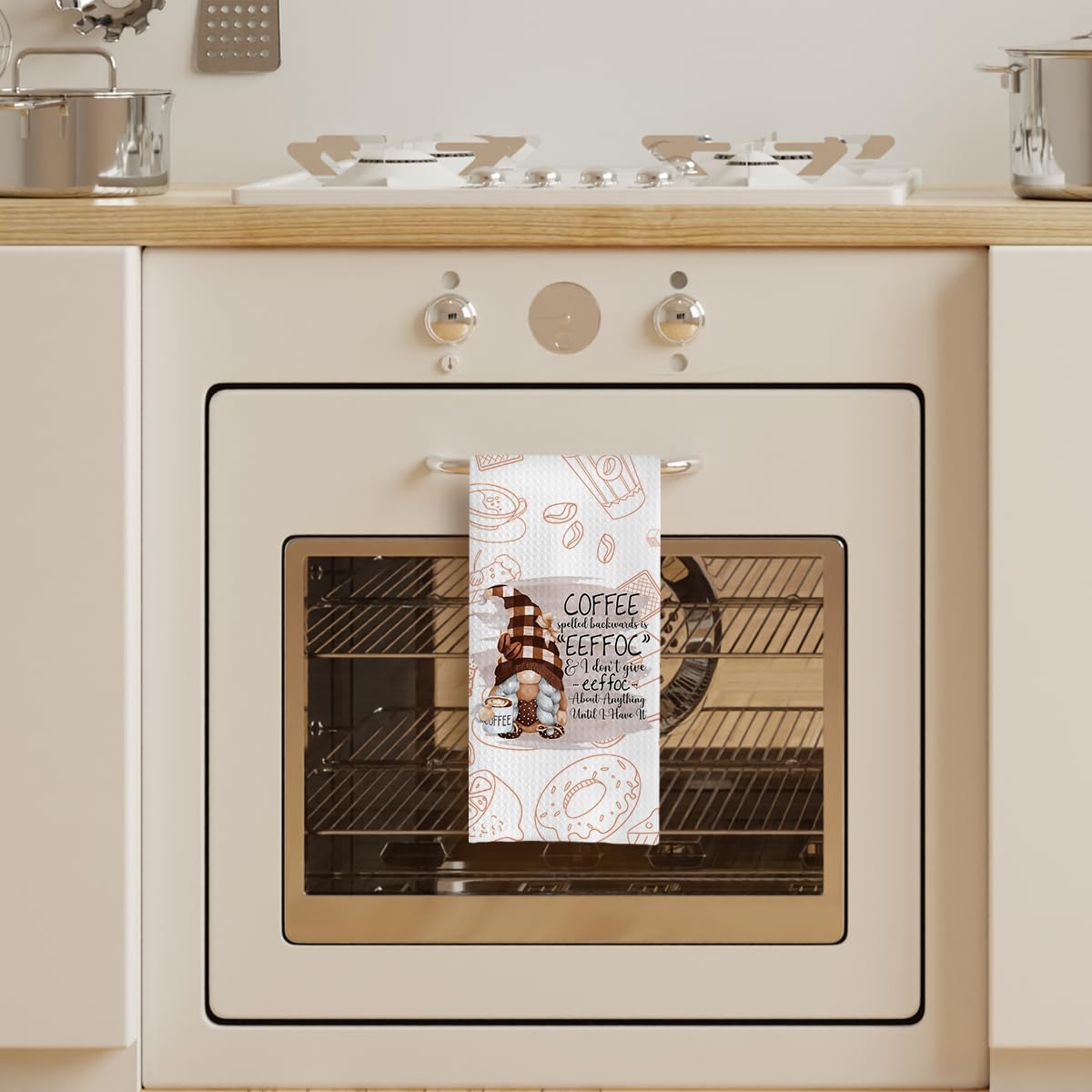 Coffee Gnome Kitchen Towels for Bar Decor - Funny Dish Tea Towels, Lover Gifts, 16x24 Inches
