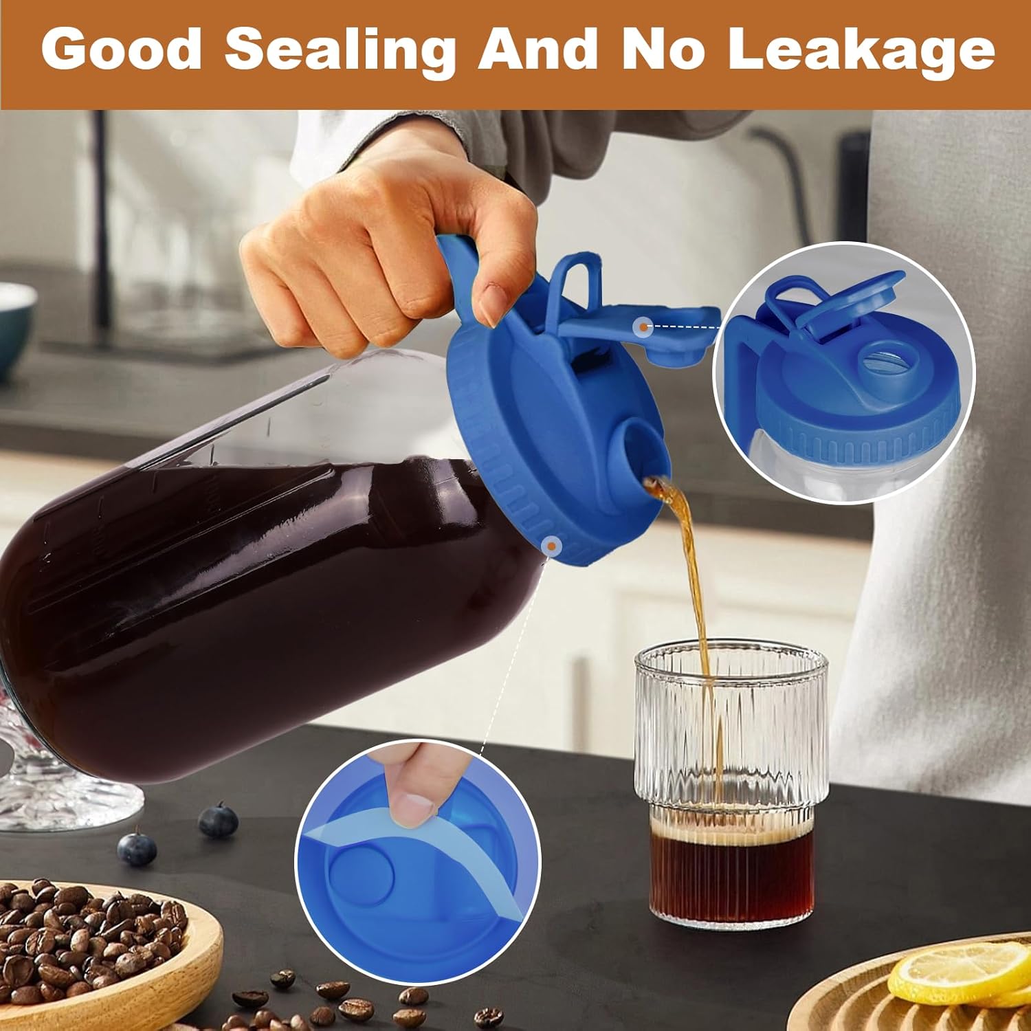 - 【Pour Spout Handle Lid】: The ergonomically thicken handle ensures a firm grip and make the cold brew coffee pitcher easy to carry. The airtight spout and well sealing silicone ring will make you say goodbye to unwanted spills & food odors, prolonging fridge beverage freshness. The flip cap lid design make the cold brew pitcher become a easy pour dispenser for pouring and storage.
