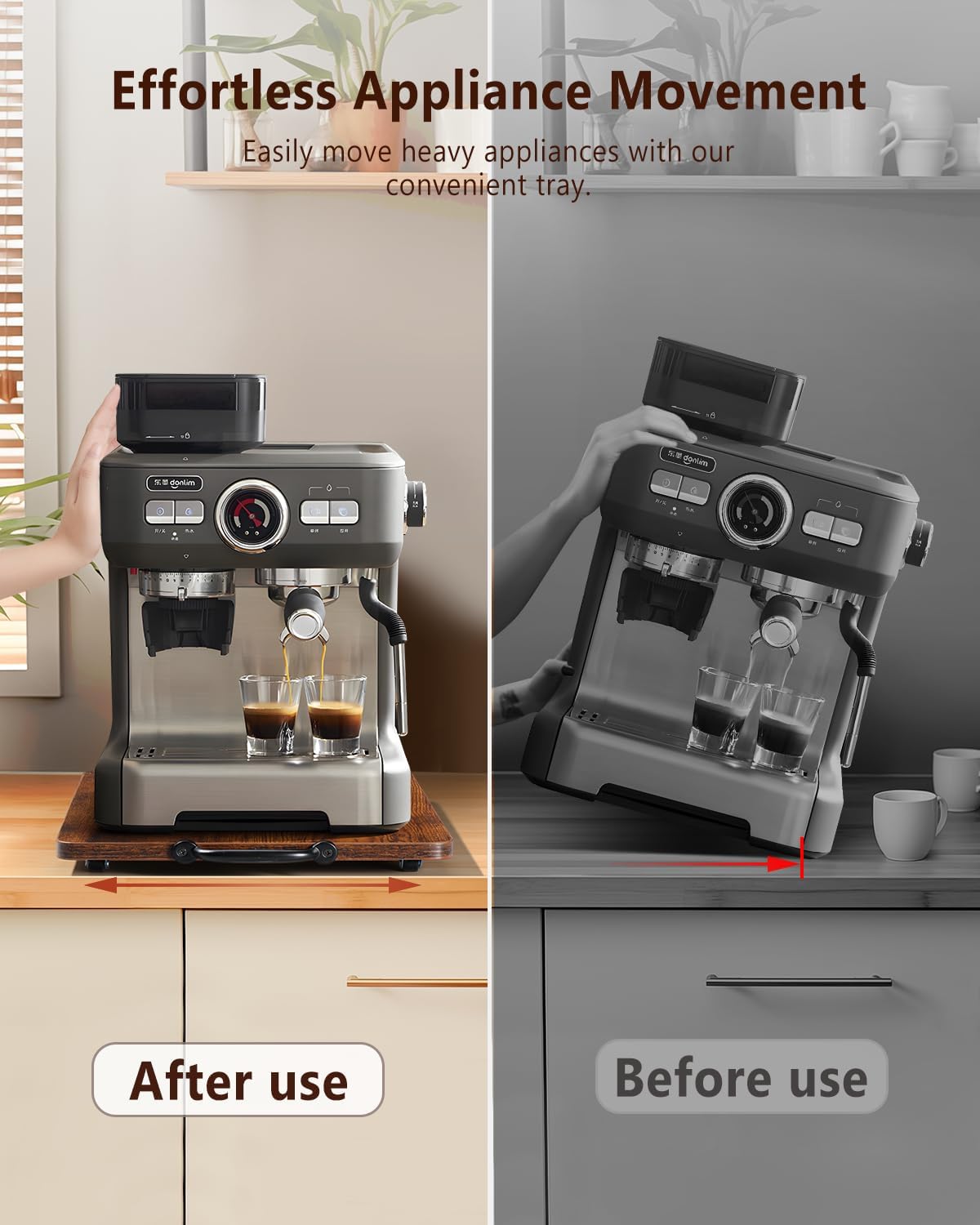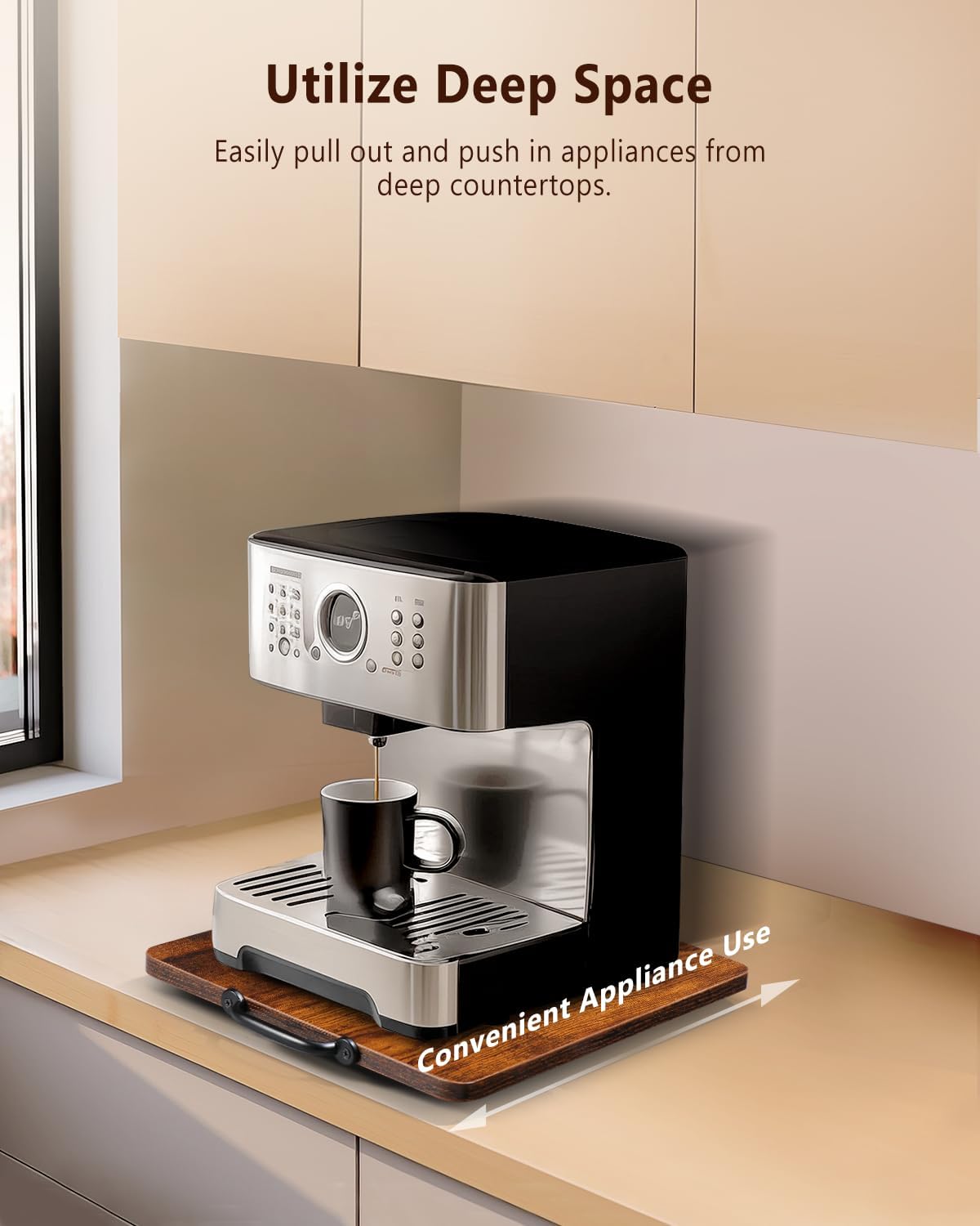 - Long-lasting & Sturdy: Our Appliance Tray supports up to 40 lb; it’s a sliding coffee tray for countertop that blends with any decor; a durable coffee slider for countertop, combining strength and style for your kitchen or dining area