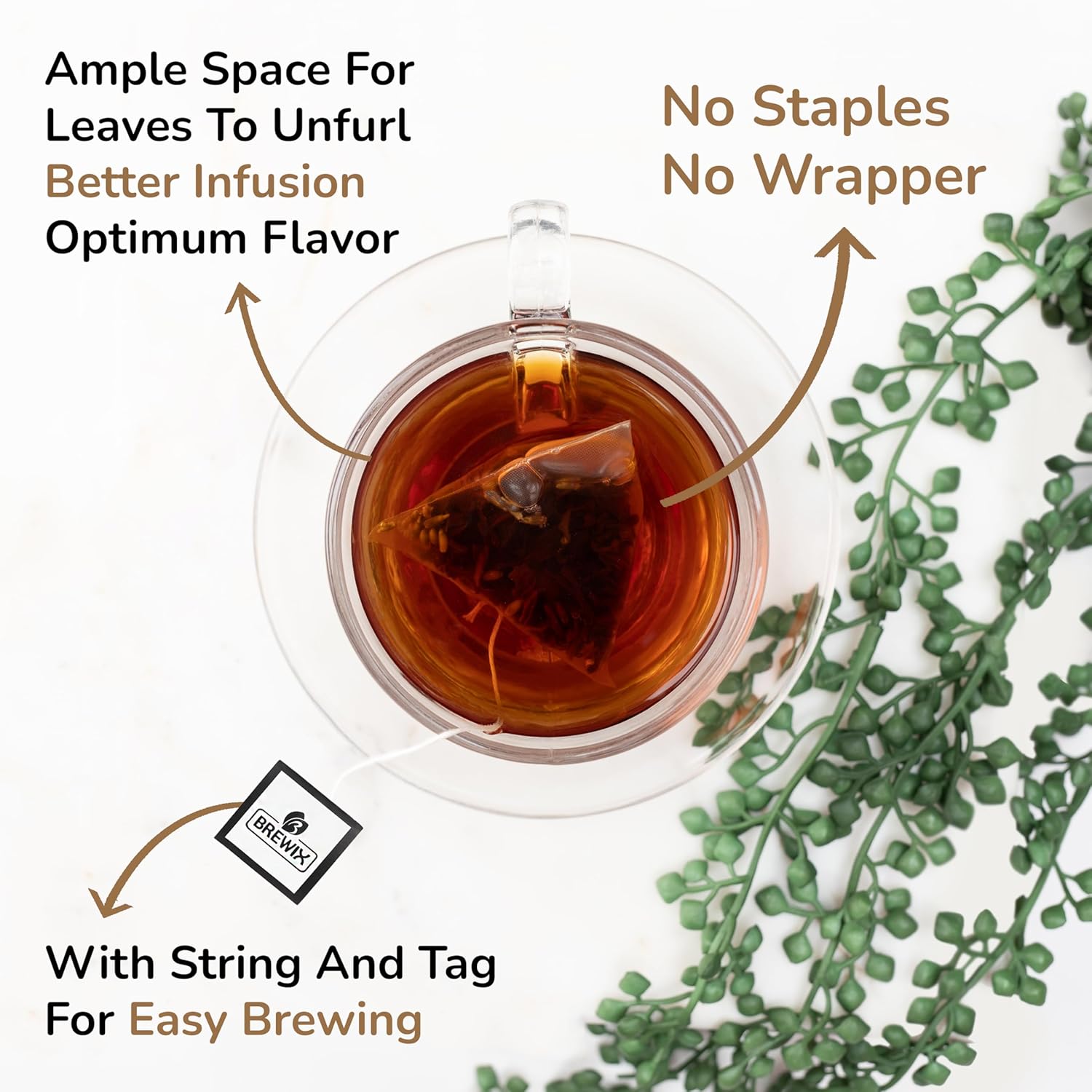 - CONVENIENTLY PACKED - The tea comes packed in pyramid bags that allow for a more fuller and intense brew as it provides ample space for the tea leaves to unfurl and infuse. We have removed individual sachets from our packaging to reduce wastage, instead the pyramid bags are packed inside a resealable pouch that can be conveniently stored or carried as a travel tea.
