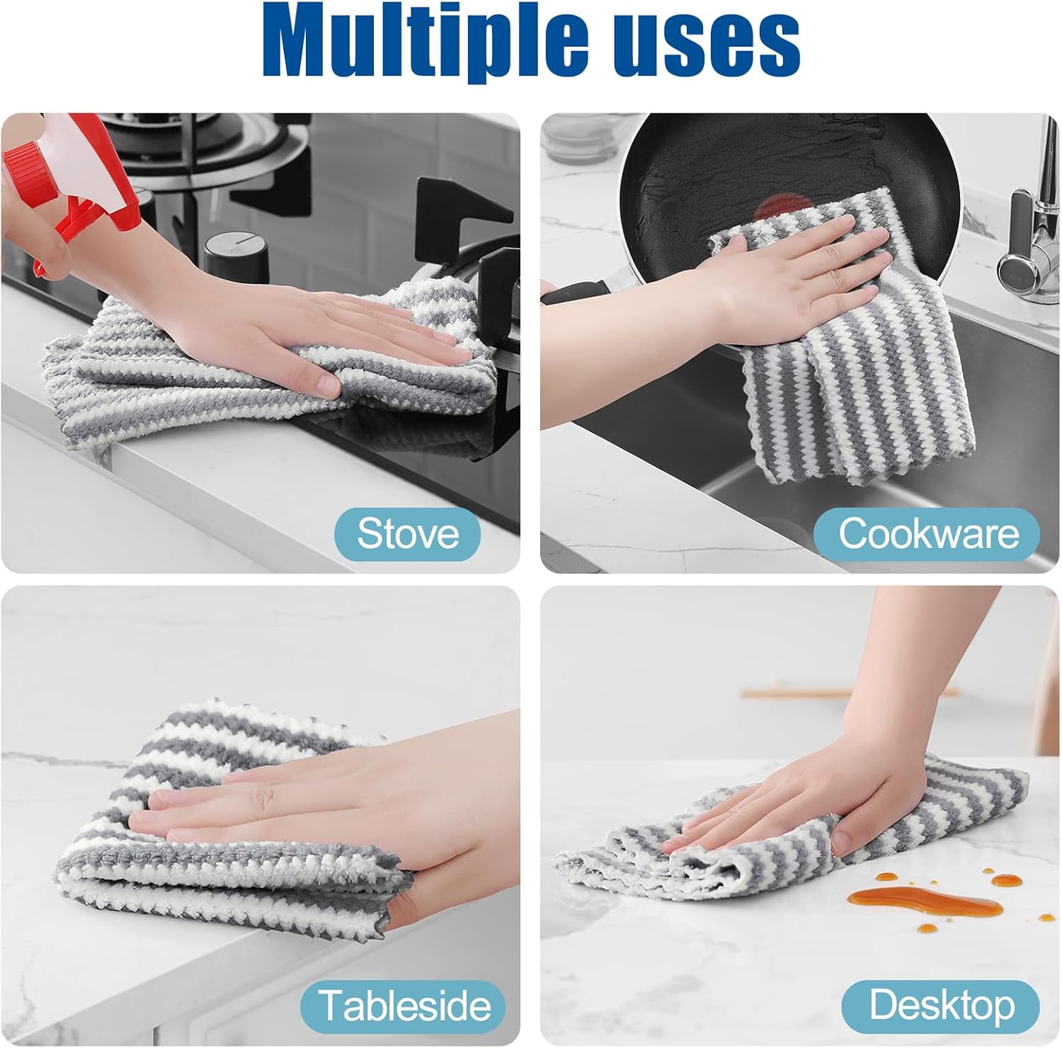 - Super Soft and Absorbent: Experience the luxurious softness of our dish towels. They are crafted with high-quality materials which feels soft and won't scratch your hands or any surfaces. Strong water absorption, easily absorb liquid and overflow, make the surface clean and dry.