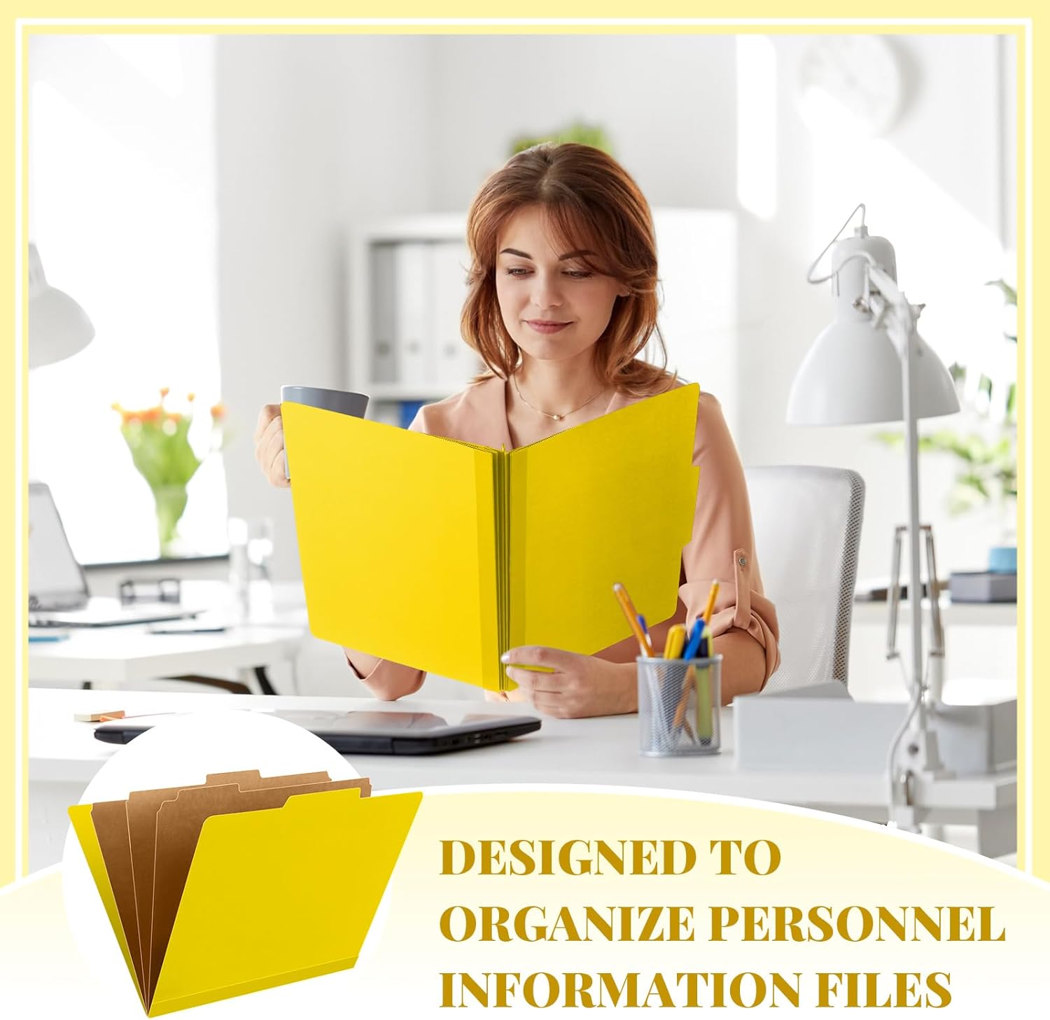 12 Pcs Classification Folders Letter Size, Back to School Supply for Teacher, Student, 3 Dividers Pressboard File Folder Bulk with 2 Fasteners, 3.5 Inch Expanding File Organizer (Yellow)