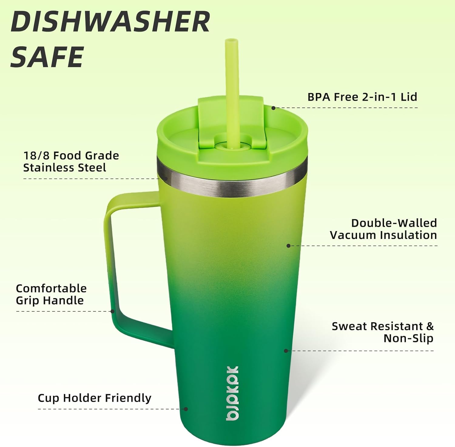 BJPKPK Insulated Tumbler with Handle, 22oz Insulated Tumblers with Lid and Straw, Stainless Steel Metal Water Bottles, Coffee Travel Mugs, Cups, Bamboo Grove