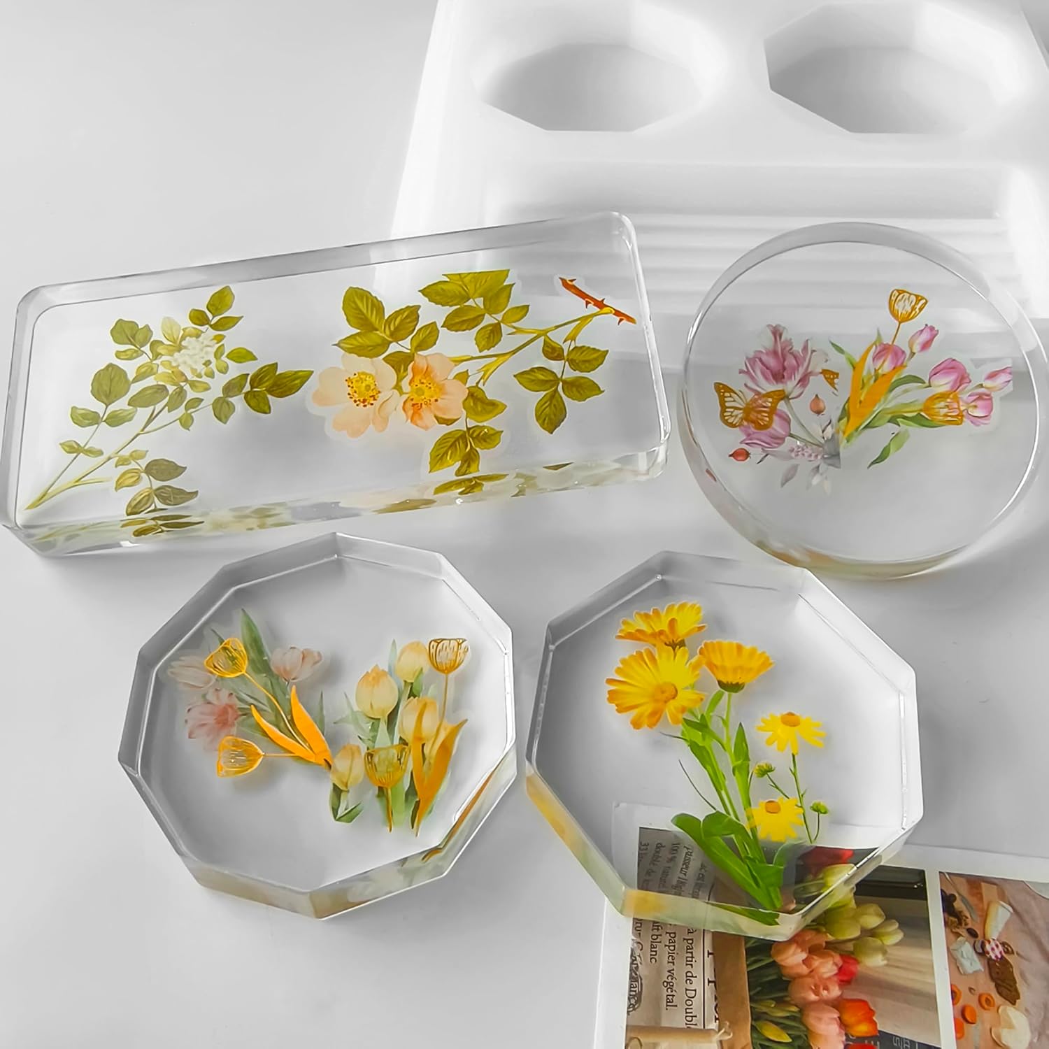 2 Pack Silicone Deep Coaster Molds - Round & Rectangle, 3D & Resin Casting, Craft Supplies - Tray Casting Table Decoration Mold