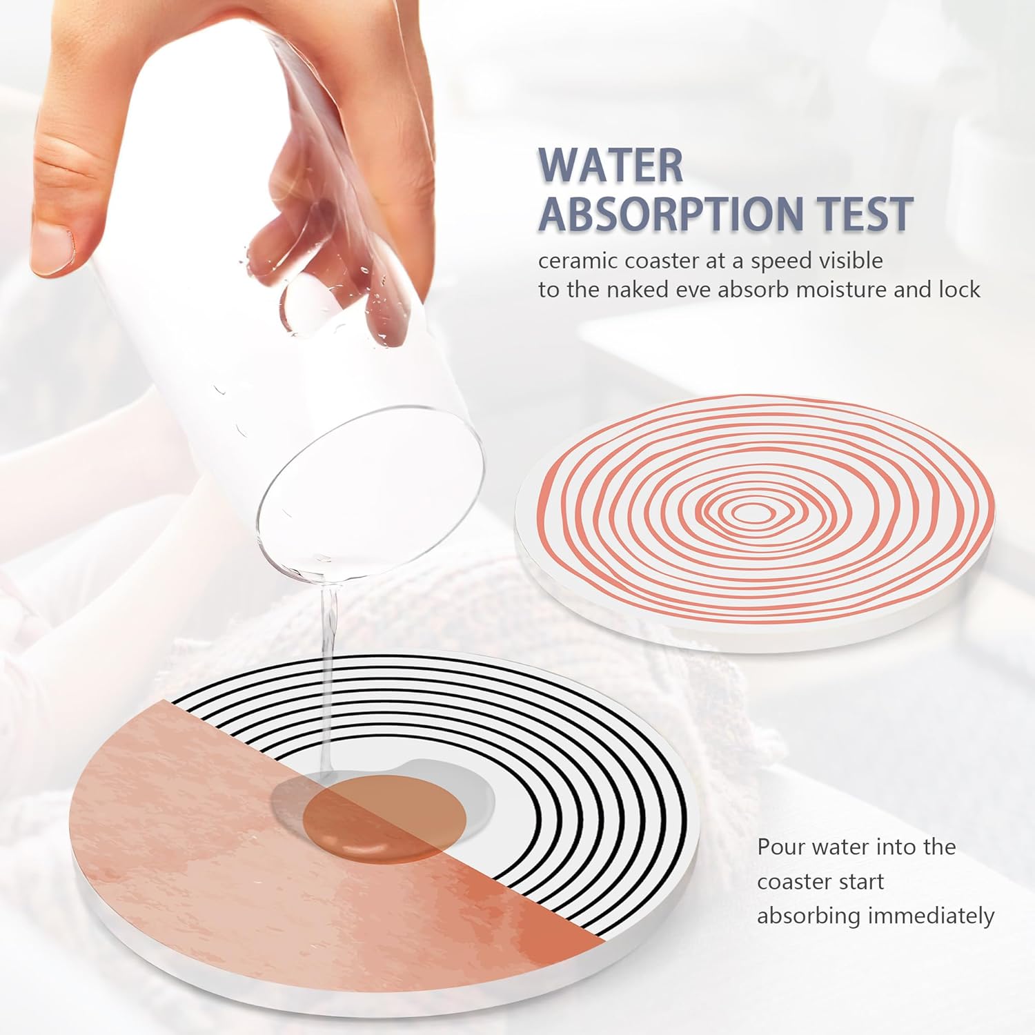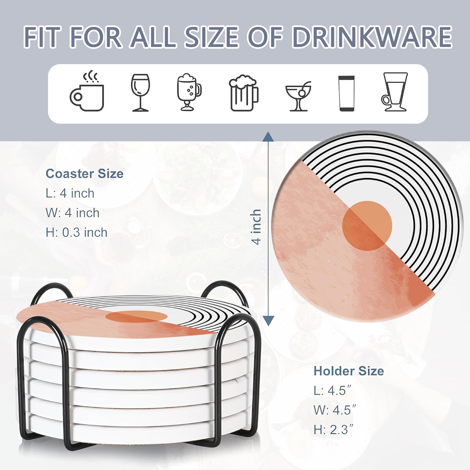 - Husiti Ceramic Coasters Set With Metal Holder: Keep Your Dining Table Stylish And Organized With This Set Of 6 4-Inch Round Coasters Featuring a Trendy Coral Watercolor Series Pattern.