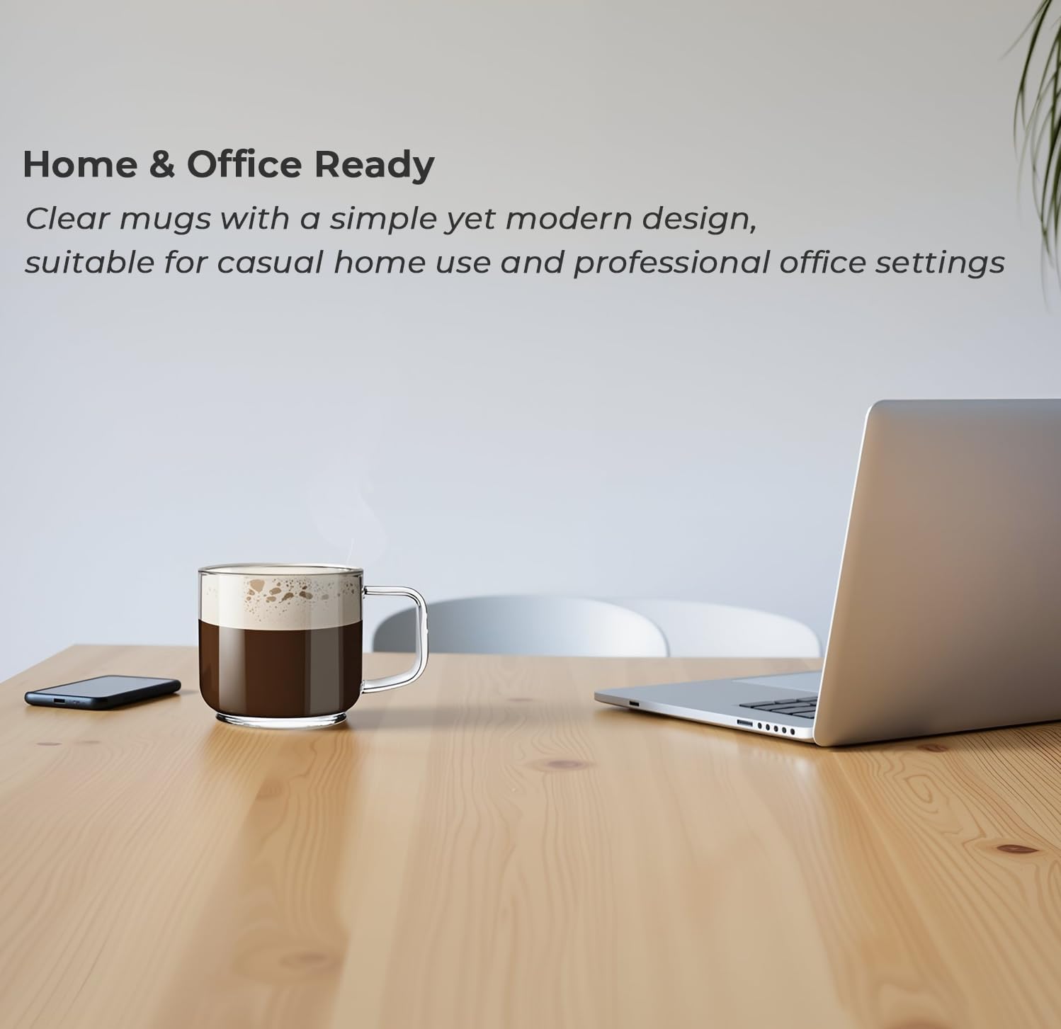 - Stylish & Modern: The highly translucent glass body and simple design of these clear mugs add elegance to any setting, making them suitable for both casual use at home and professional settings in the office