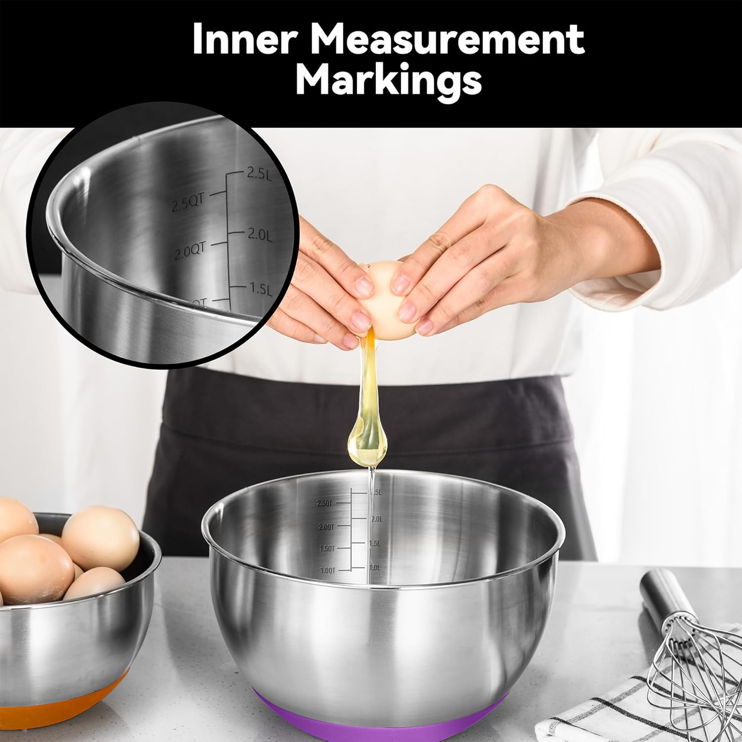 - 【Non-Slip Base and Graduated Markings】: Enjoy stable mixing with the non-slip base and use the convenient internal measuring lines for precise ingredient additions, streamlining your cooking process.
