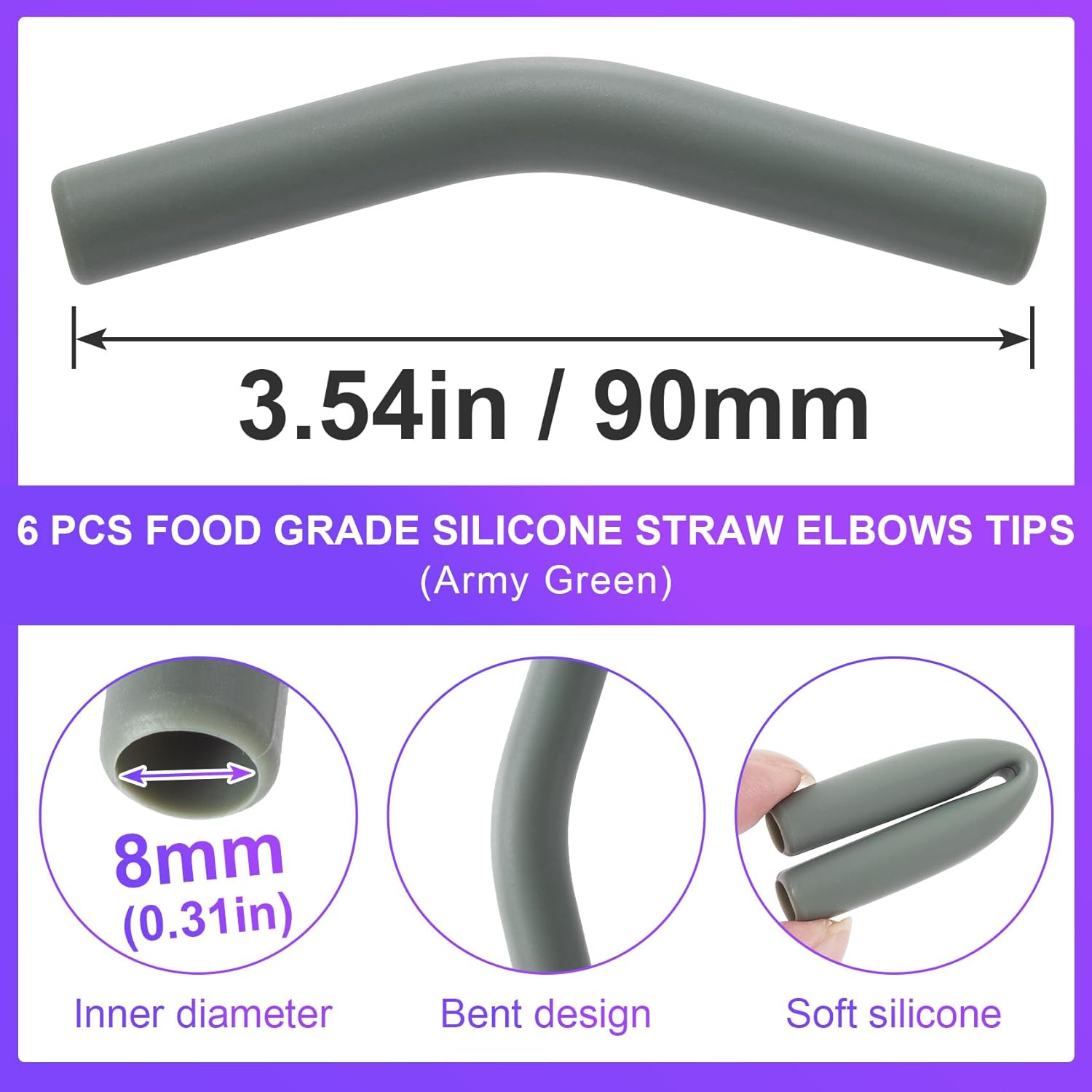 6 Pcs Army Green Silicone Straw Tips 8mm Outer Diameter Flexible Protective Eco-friendly Reusable Straw Covers for Metal Straws
