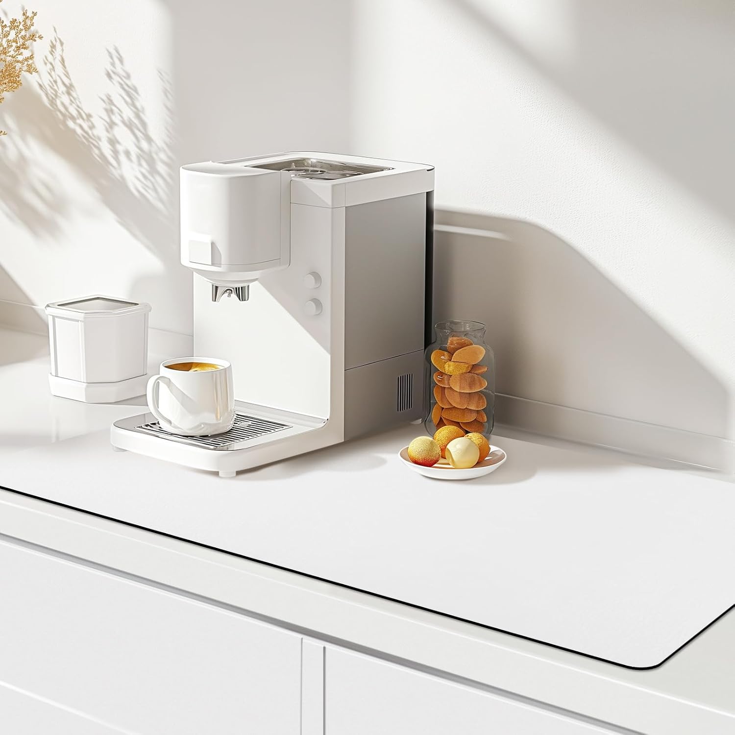 - 【Customizable Fit for Any Space】 Available in multiple sizes, this versatile mat is designed to fit most countertops and kitchen setups. Easily trimmable, it offers a tailored fit for your coffee station, dish drying area, or any other countertop space, ensuring maximum coverage and protection.