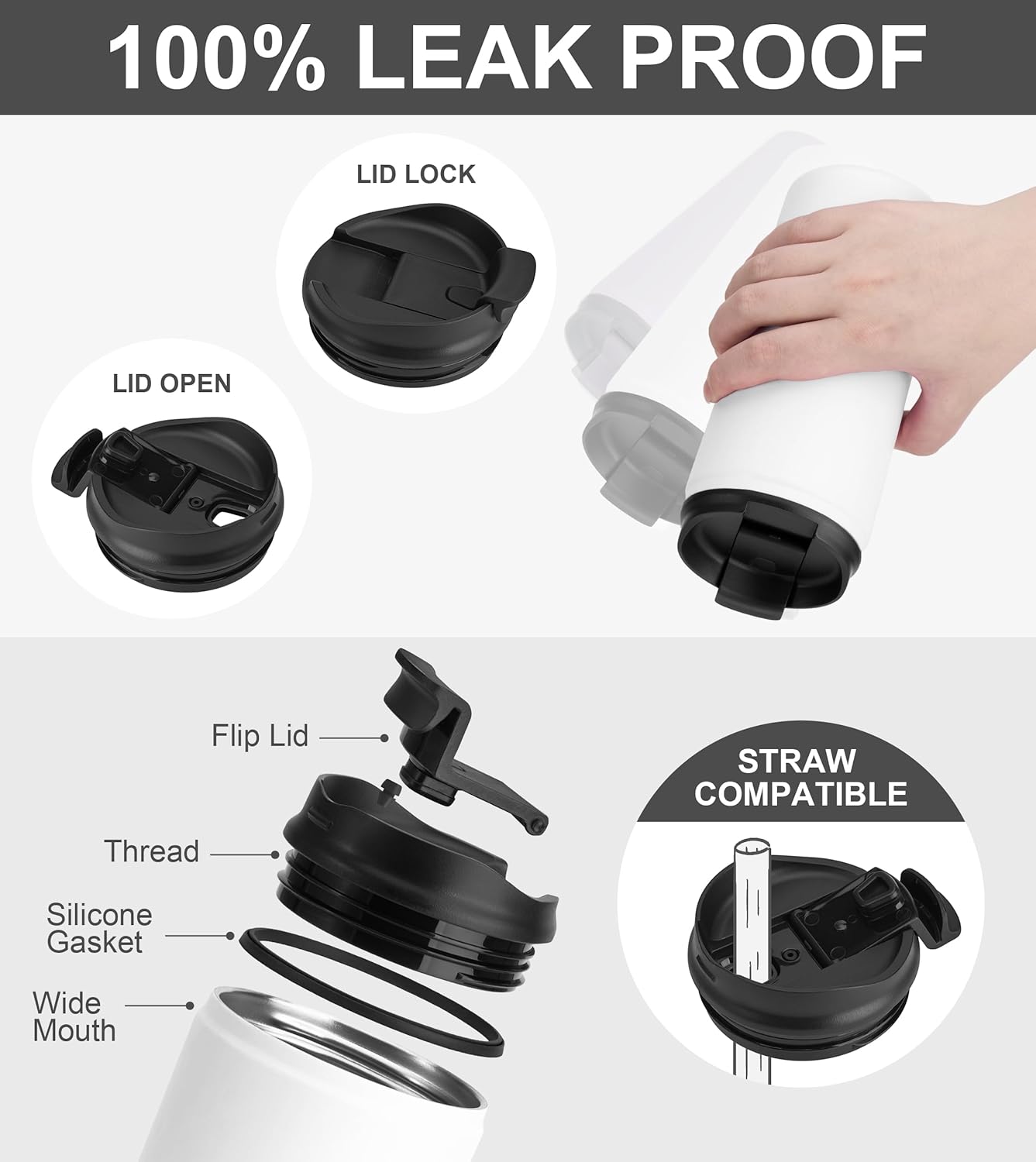 - Leak Proof Screw-on Lid: BPA Free , silicone gasket seals, easy sipping, straw friendly