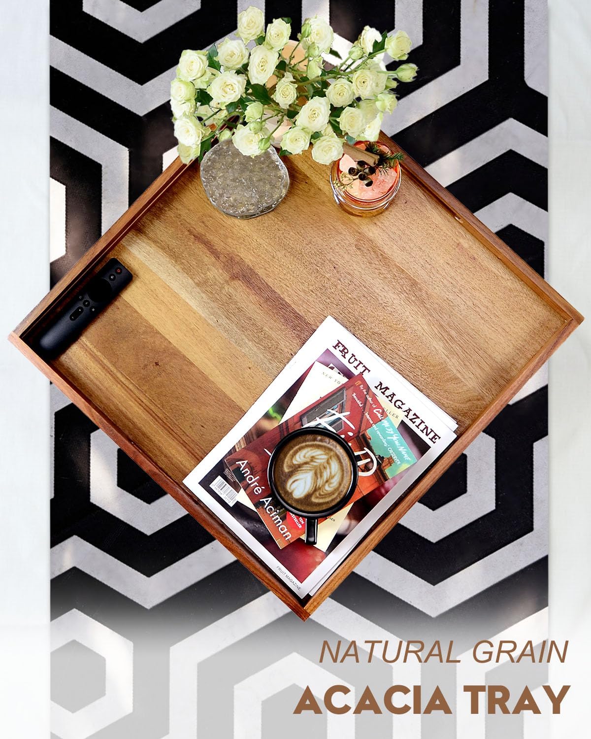 - Elegant Design & Versatile Functionality: Elevate your living space with our stylish Ottoman Tray. Measuring L20" x W20" x H2.2", this large wood tray is the perfect addition to any ottoman, coffee table, or sofa. Use it to serve breakfast, snacks, drinks, or as a decorative centerpiece.