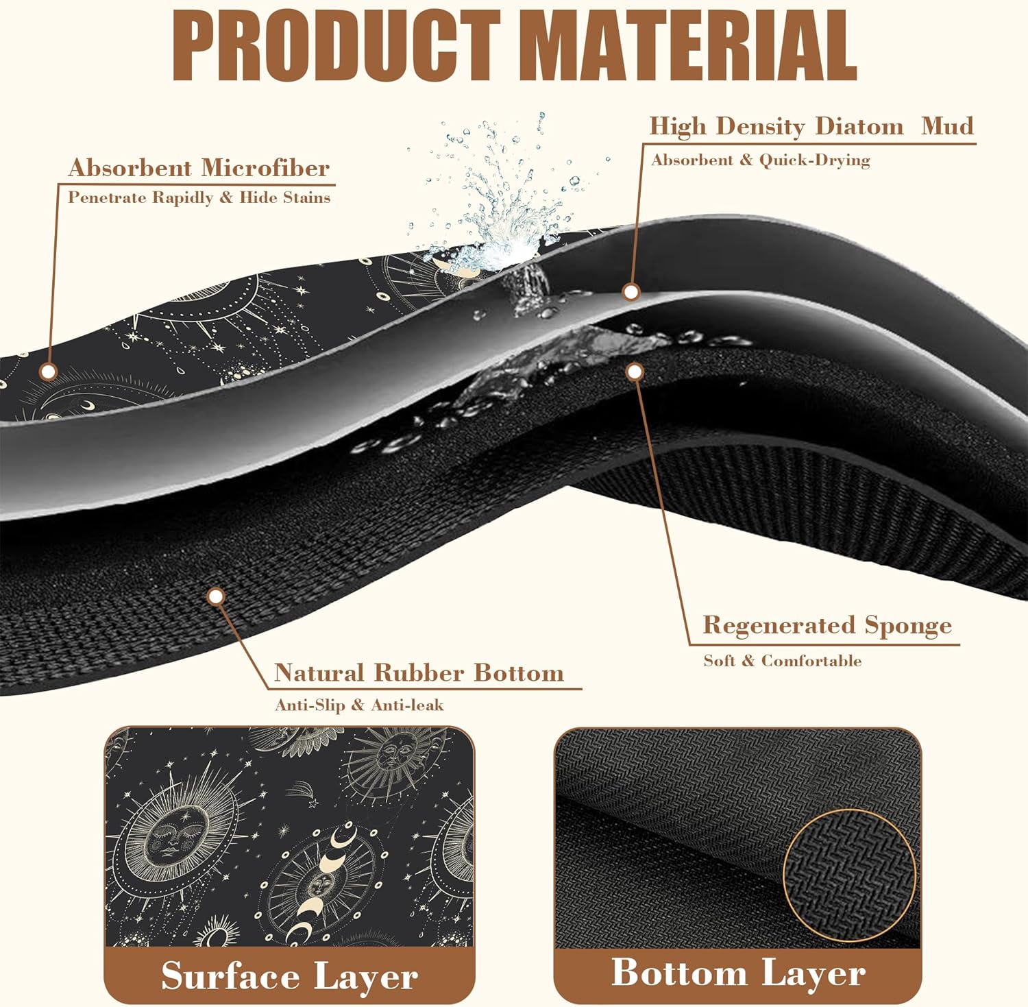 Moon Sun Zodiac Coffee Mat Astrology Dish Drying Mat for Kitchen Counter Absorbent Hide Stain Rubber Backed Coffee Bar Accessories Fit Under Espresso Machine, 15.7 x 23.6 Inch