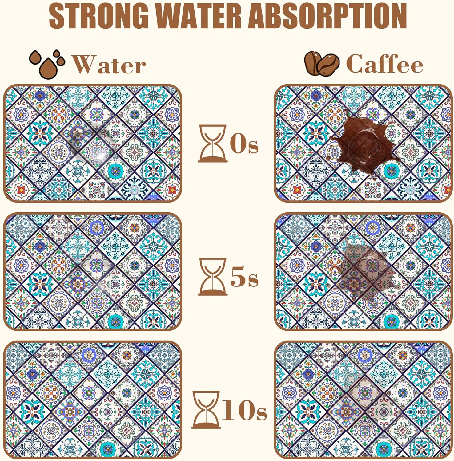 Colorful Tiles Dish Drying Mat for Kitchen Counter Coffee Mat Hide Stain Absorbent Non-Slip Rubber Backed Drying Rack Pad Espresso Machine Coffee Bar Accessories 11.8 x 19.7 Inch