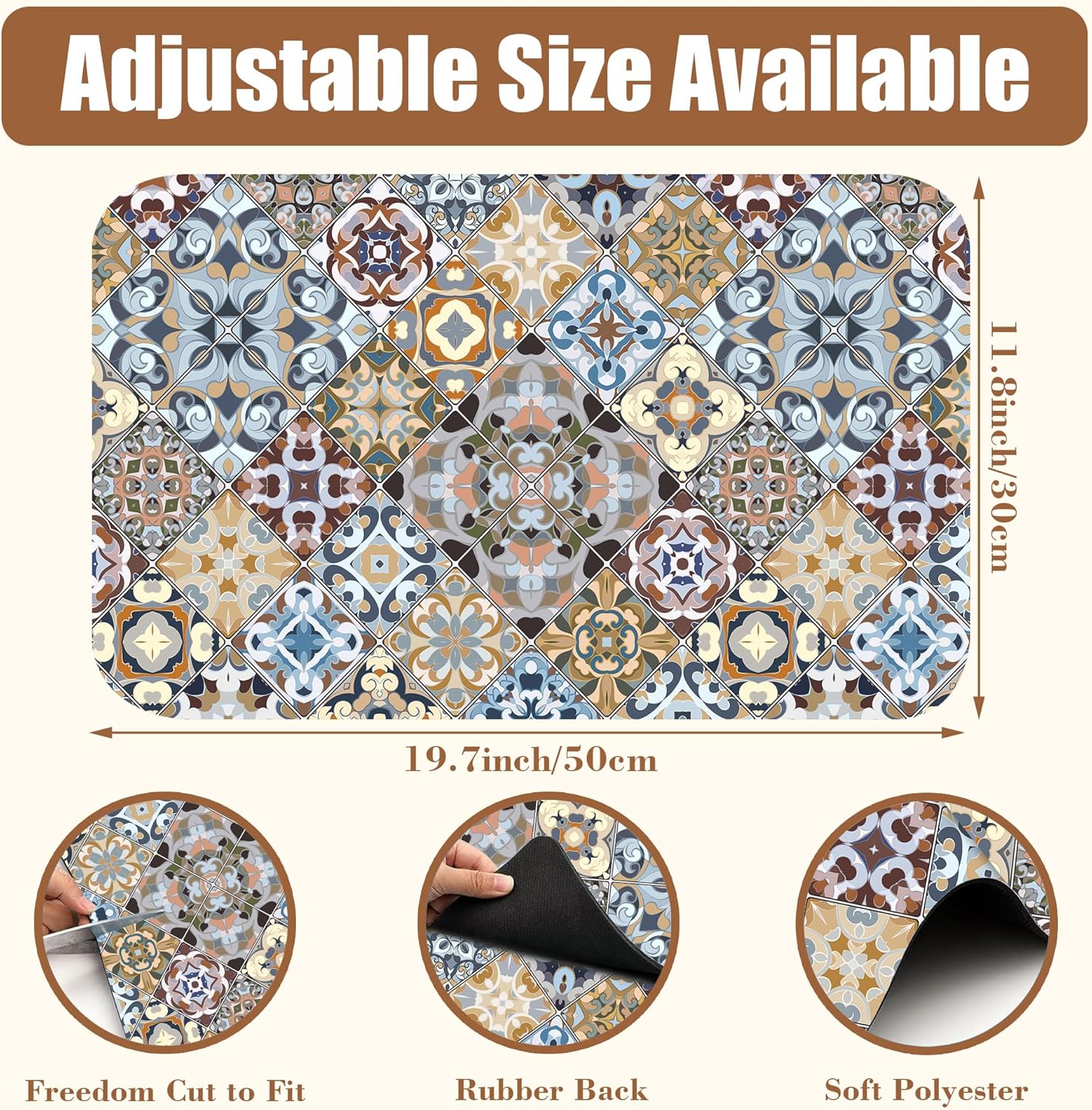 Retro Colorful Tiles Dish Drying Mat for Kitchen Counter Floral Coffee Mat Hide Stain Absorbent Drying Rack Pad with Rubber Backed Espresso Machine Coffee Bar Accessories 11.8 x 19.7 Inch