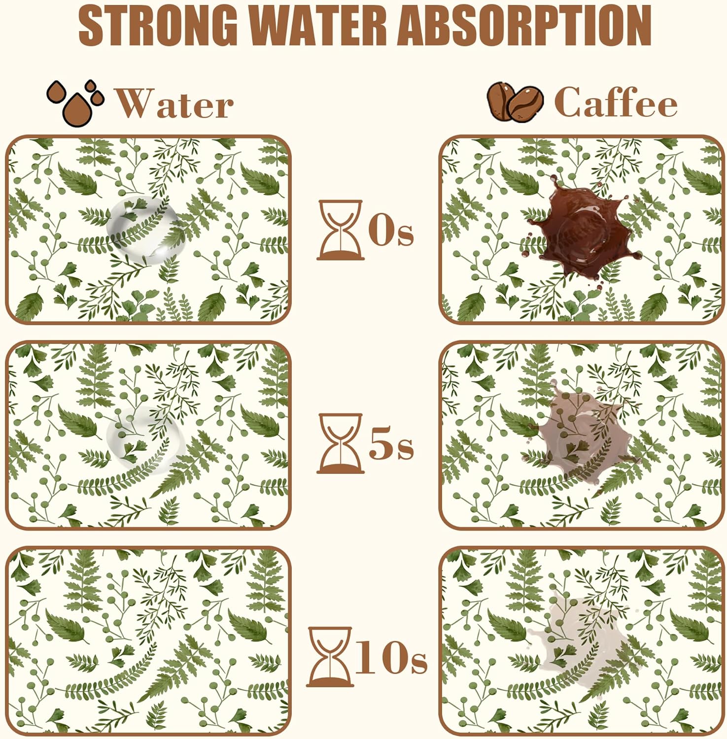 Green Leaf Coffee Mat Herb Dish Drying Mat for Kitchen Counter Hide Stain Rubber Backed Absorbent Coffee Bar Accessories Fit Under Espresso Machine Cafe Table, 11.8 x 19.7 Inch