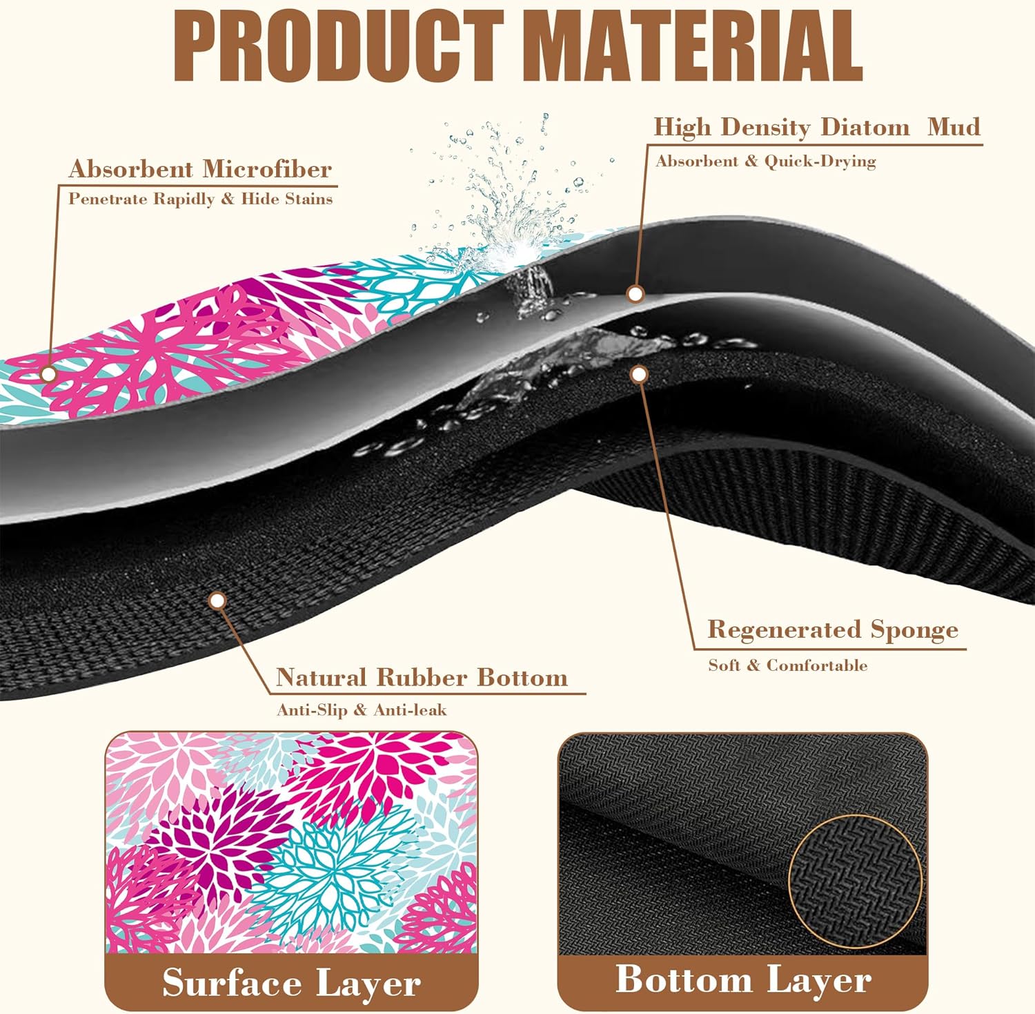 - 【Absorbent & Quick-Drying】The surface of this coffee mat is made of absorbent microfiber and the middle is made of composite sponge, which can absorb up to 4 times its weight in water and has a strong water absorption capacity. The high-density design makes it fast drying and can quickly absorb spilled liquids to keep your counter or desktop dry