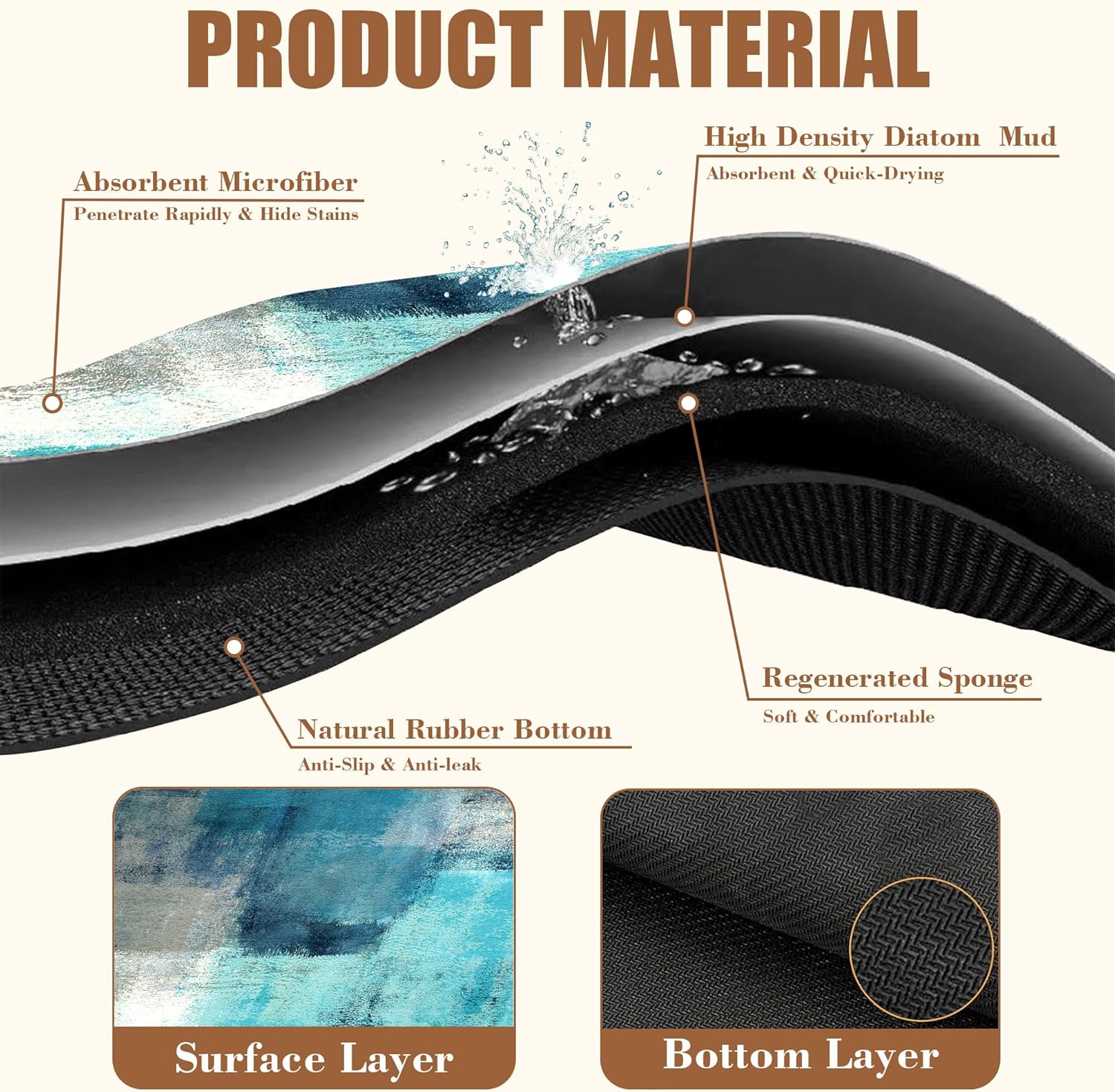Teal and Grey Abstract Art Dish Drying Mat for Kitchen Counter Coffee Bar Mat Hide Stain Absorbent Rubber Backed Drying Rack Pad Espresso Machine Coffee Bar Accessories 11.8 x 19.7 Inch