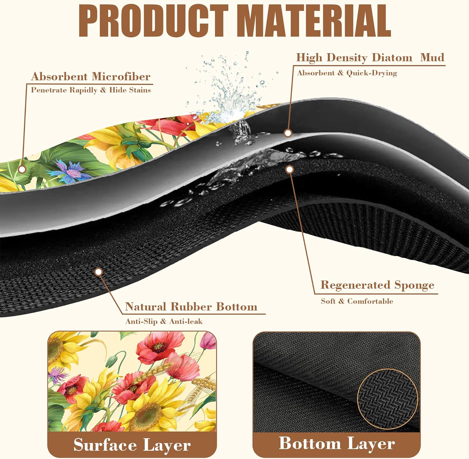 - 【Absorbent & Quick-Drying】The surface of this coffee mat is made of absorbent microfiber and the middle is made of composite sponge, which can absorb up to 4 times its weight in water and has a strong water absorption capacity. The high-density design makes it fast drying and can quickly absorb spilled liquids to keep your counter or desktop dry