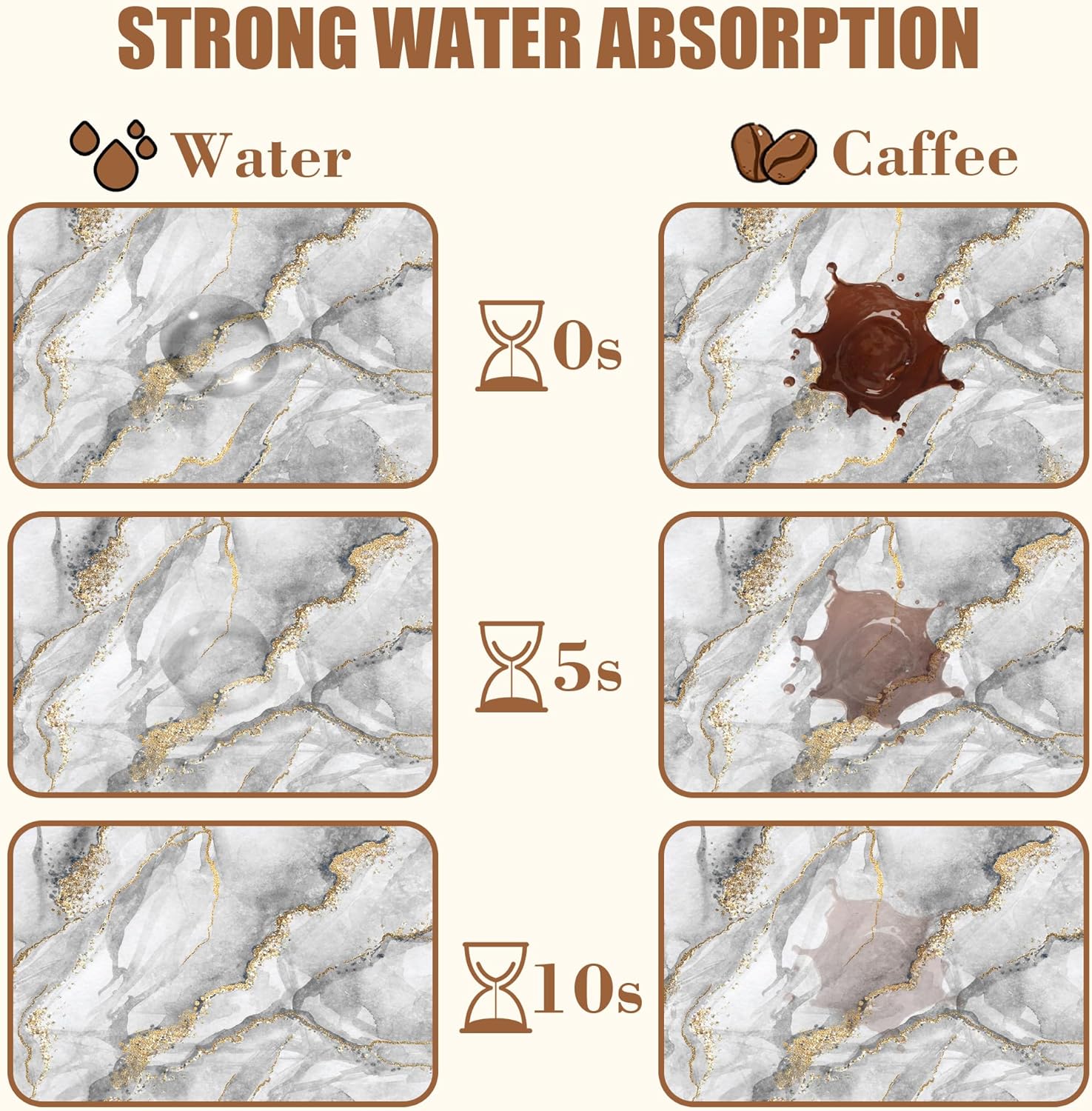 - 【Absorbent & Quick-Drying】The surface of this coffee mat is made of absorbent microfiber and the middle is made of composite sponge, which can absorb up to 4 times its weight in water and has a strong water absorption capacity. The high-density design makes it fast drying and can quickly absorb spilled liquids to keep your counter or desktop dry