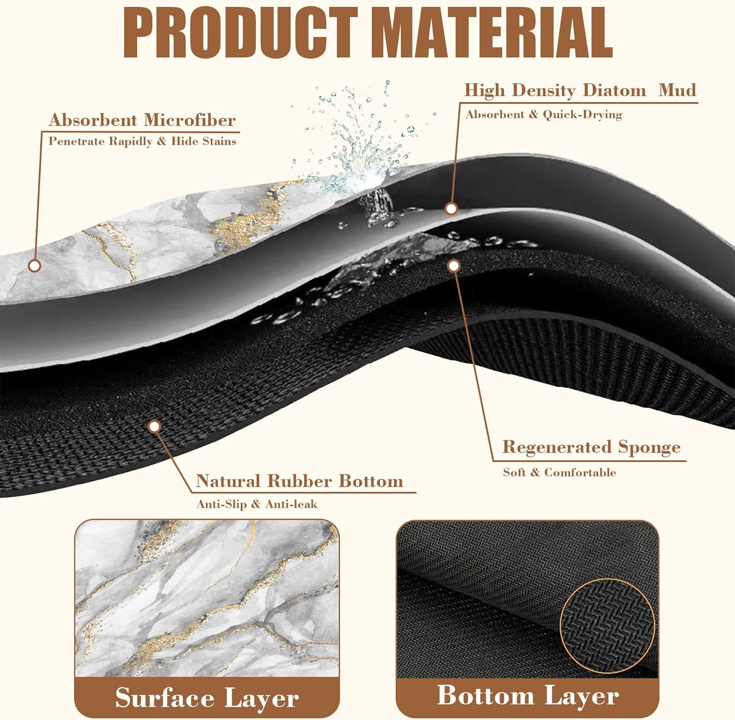 - 【Non-Slip Rubber Base】The bottom of the coffee bar mat has a non-slip textured natural rubber that can firmly grip the tabletop. Just place the coffee machine or cutlery on top, and the non-slip bottom will hold it firmly in place, also preventing liquids from seeping into the tabletop and leaving stains