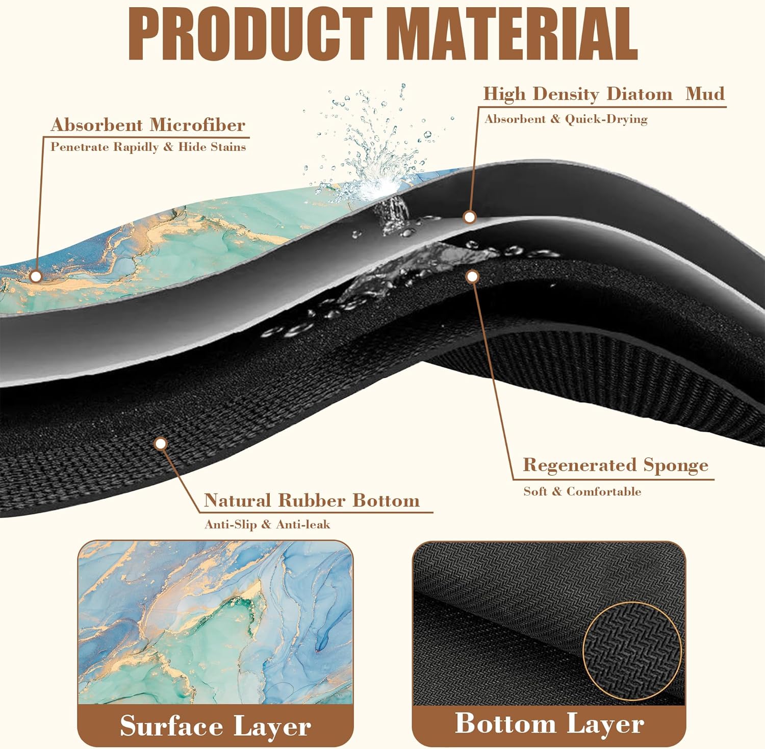 Turquoise and Blue Marble Coffee Mat Absorbent Dish Drying Mat for Kitchen Counter Hide Stain Rubber Backed Coffee Bar Accessories Fit Under Espresso Machine Dish Drainer, 11.8 x 19.7 Inch