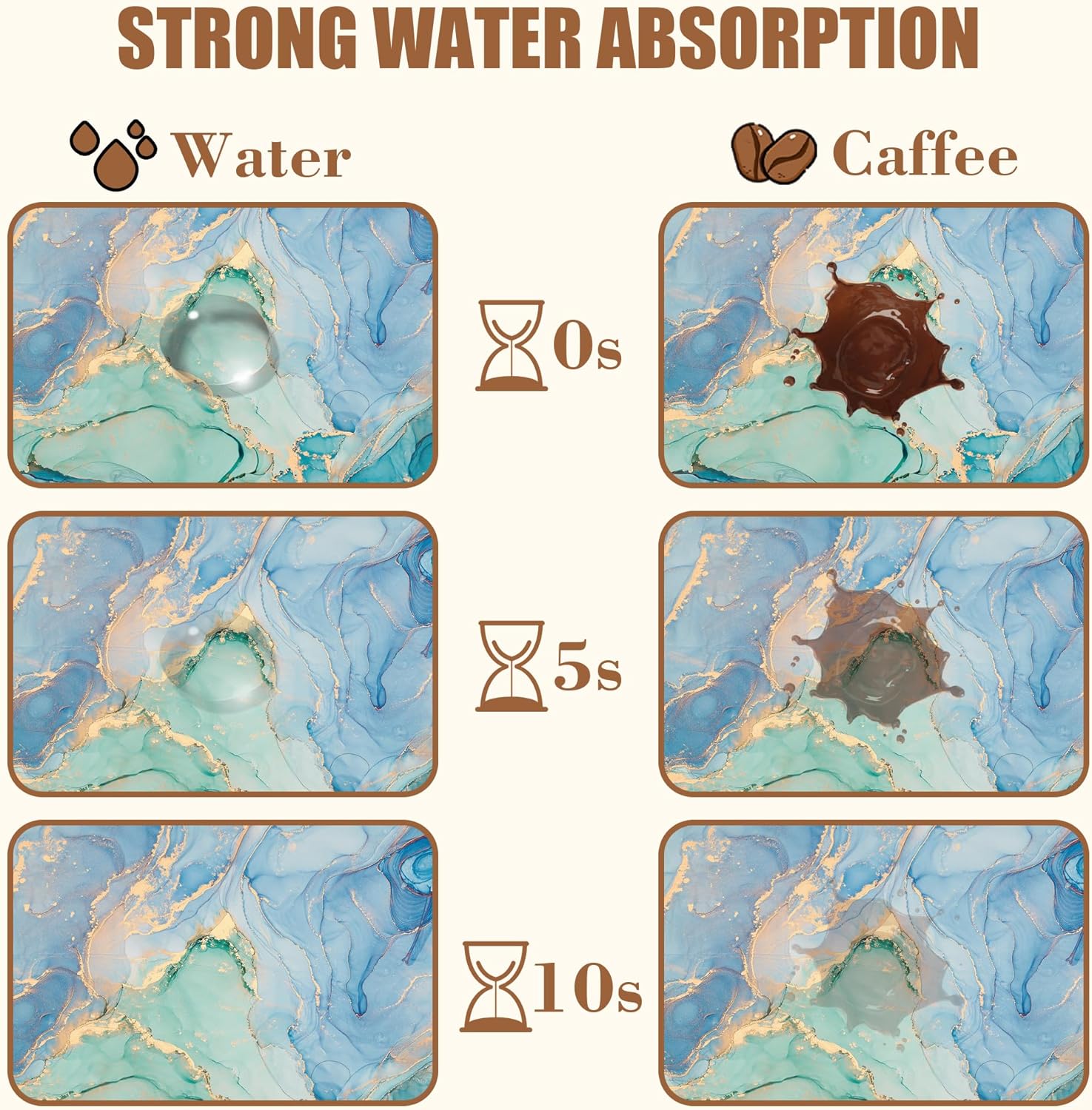 - 【Absorbent & Quick-Drying】The surface of this coffee mat is made of absorbent microfiber and the middle is made of composite sponge, which can absorb up to 4 times its weight in water and has a strong water absorption capacity. The high-density design makes it fast drying and can quickly absorb spilled liquids to keep your counter or desktop dry