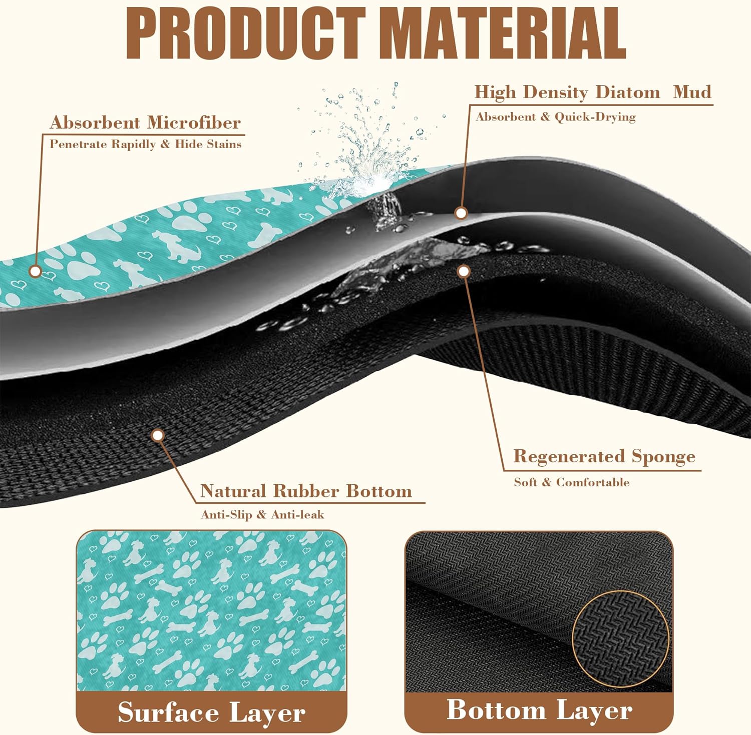 - 【Absorbent & Quick-Drying】The surface of this coffee mat is made of absorbent microfiber and the middle is made of composite sponge, which can absorb up to 4 times its weight in water and has a strong water absorption capacity. The high-density design makes it fast drying and can quickly absorb spilled liquids to keep your counter or desktop dry