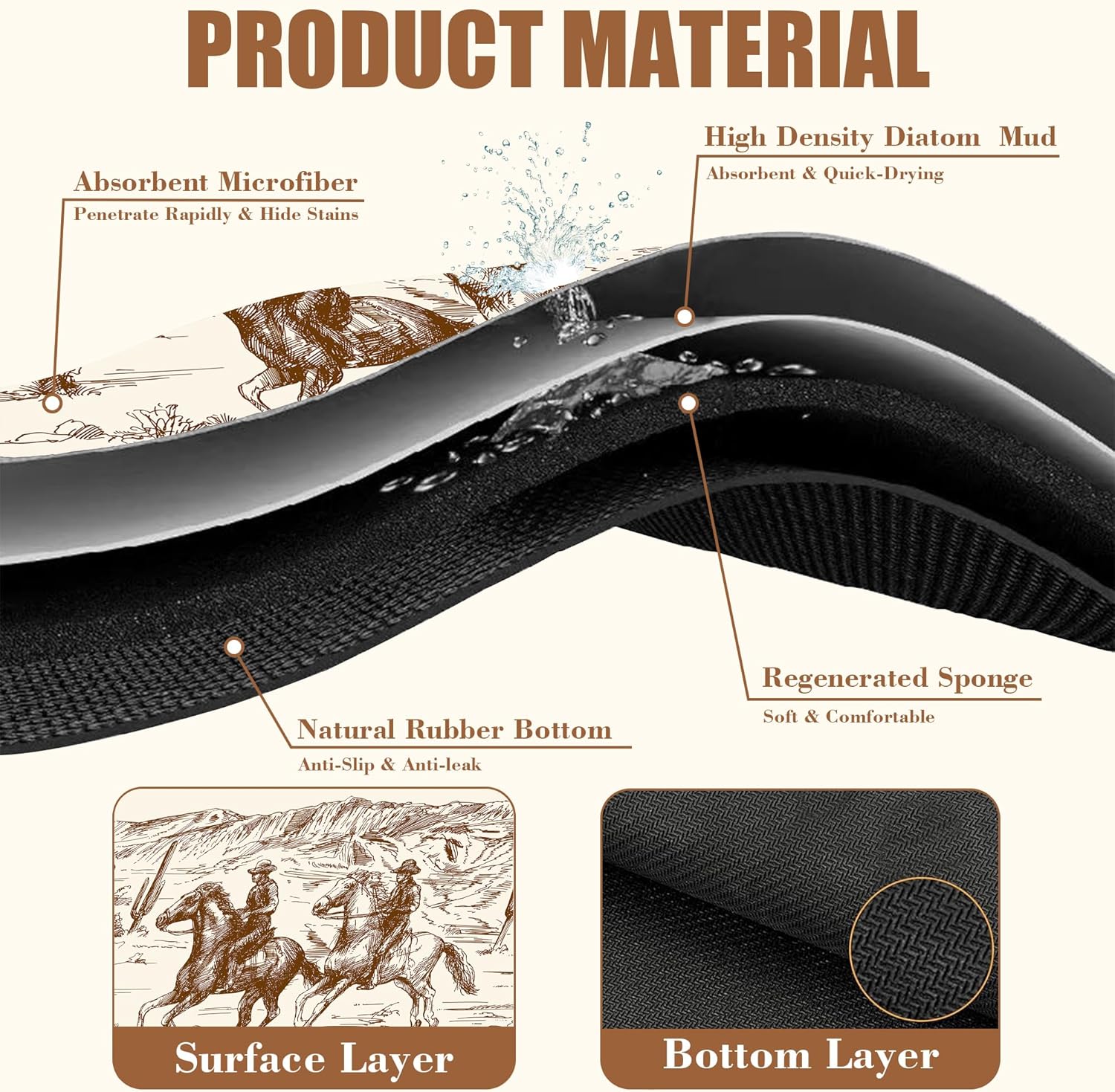 Dish Drying Mat Desert with Cowboys Coffee Bar Mat for Countertop Absorbent Coffee Mat Rubber Backed Hide Stain Dish Drainer Rack Mat Coffee Maker Coffee Pot Dining Room Decoration 15.7 x 23.6 Inch