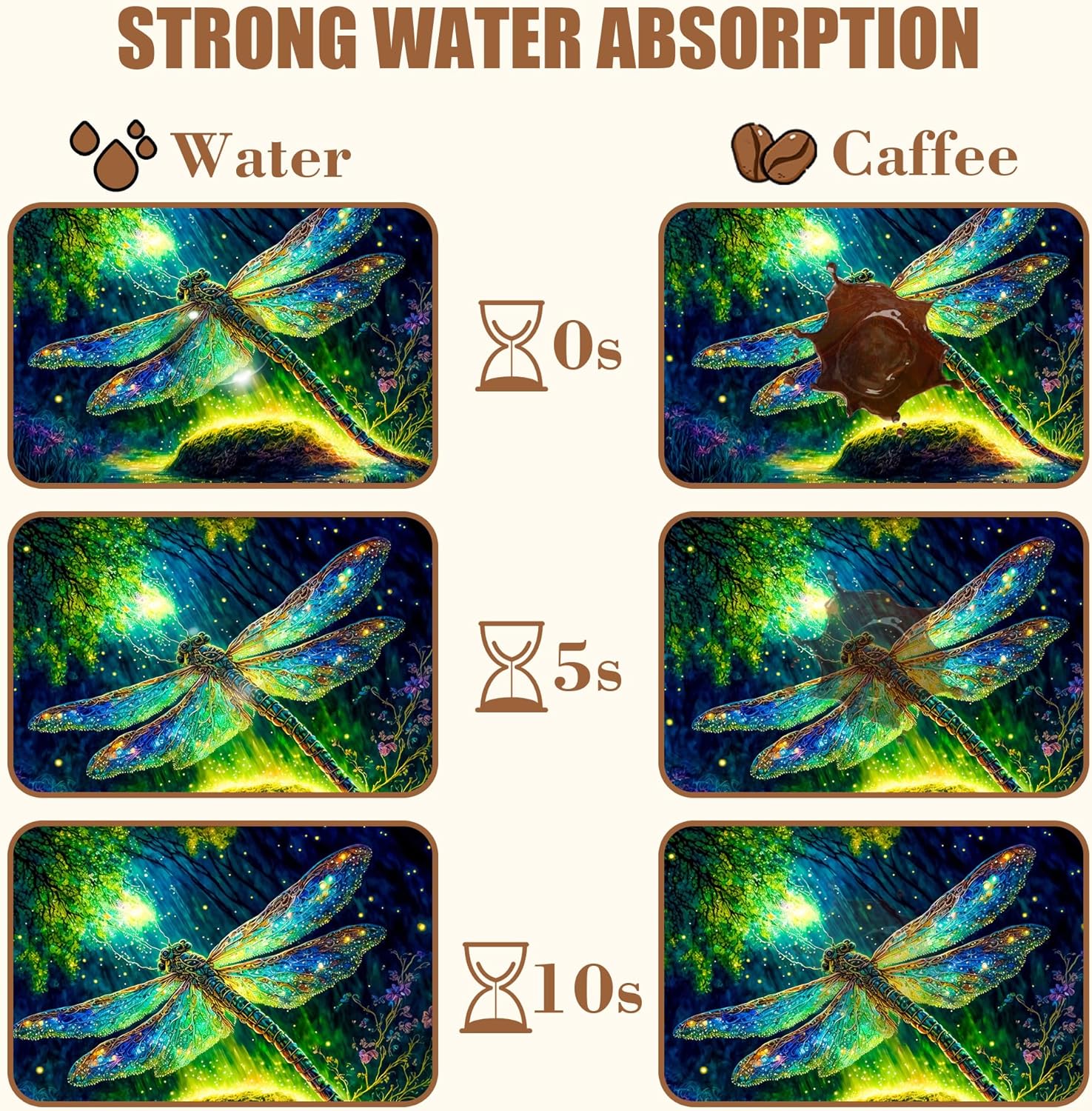 Magic Dragonfly Forest Coffee Mat - Absorbent Dish Drying Mat for Kitchen Counter, Hide Stain, Rubber Backed Bar Accessories, Fits Under Maker, Pot, Espresso Machine, 15.7 x 23.6 Inch